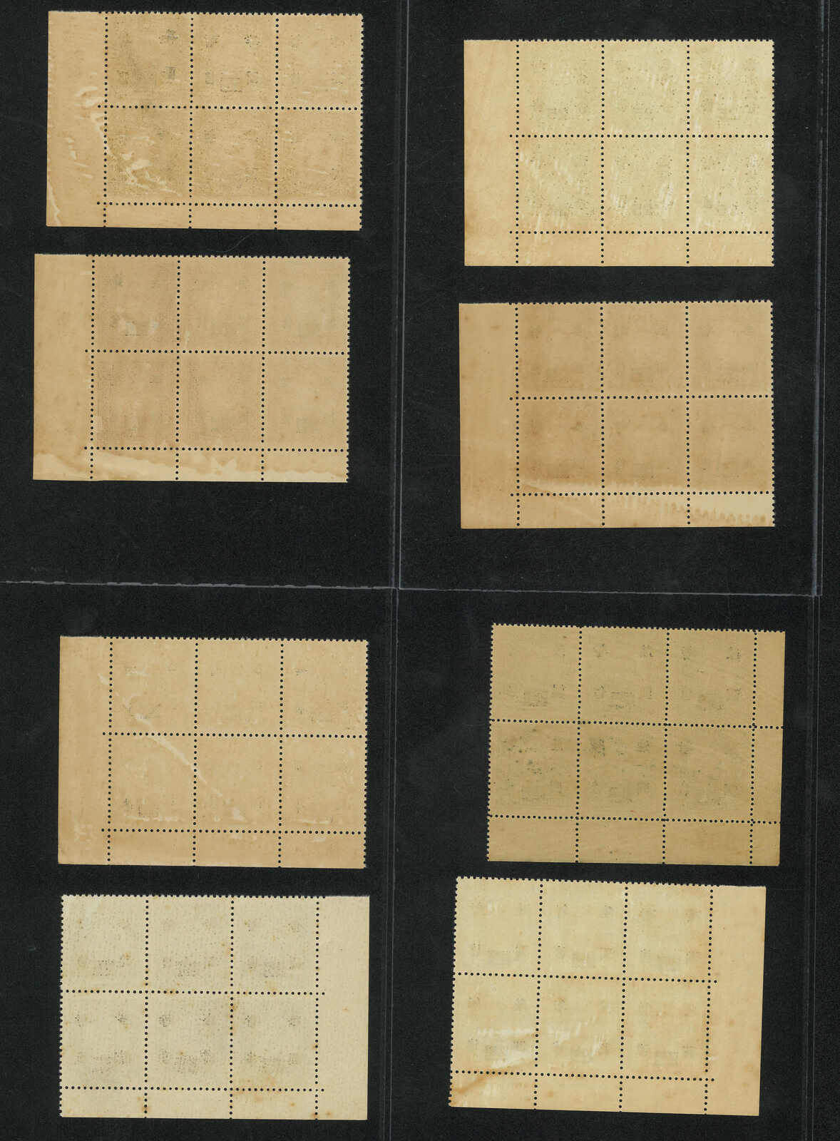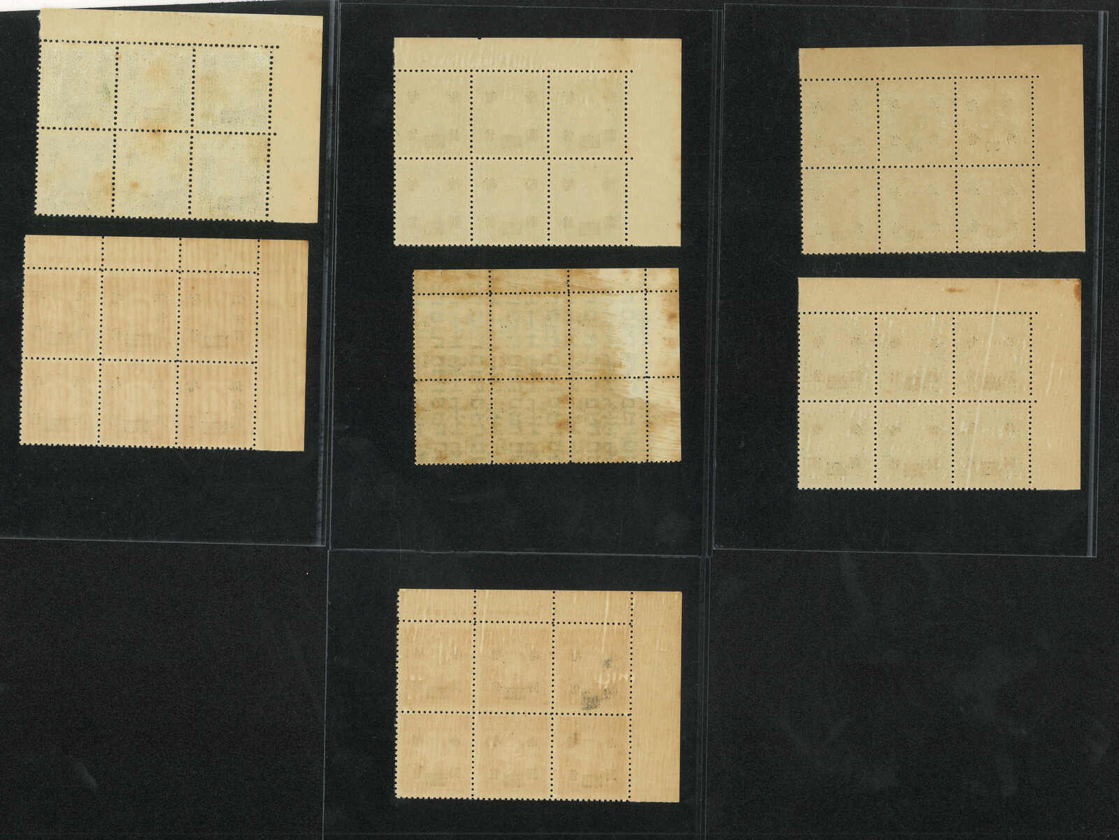 1943至1945年一組7件日佔華中改值暫售票,蓋於中華版孫像六方連新帶左上廠銘直角邊。面值由3角至500元。原膠無貼。(Image 1) (Image 2)