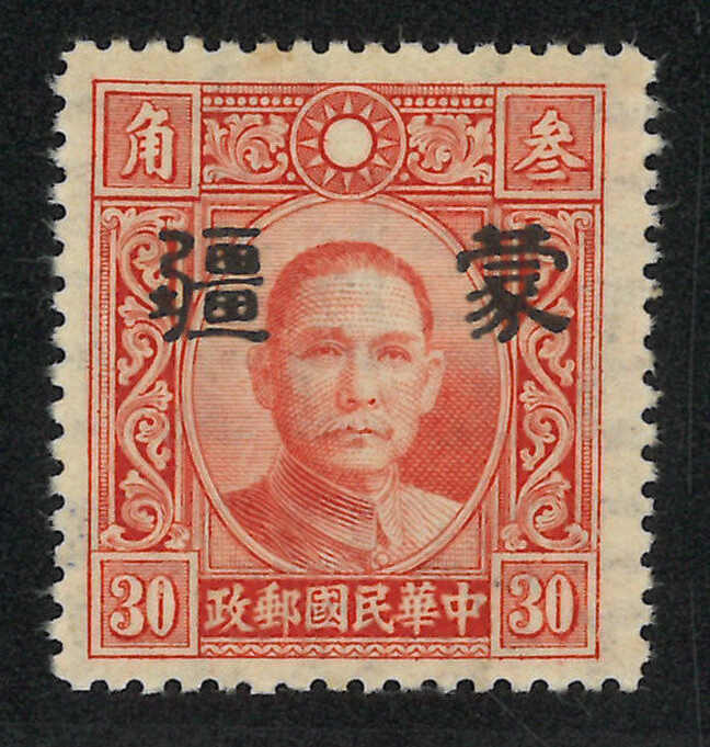 1941年大東版有水印孫像3角加蓋小字“蒙疆”新(陳目JM20),原膠無貼,背微黃。(Image 1) (Image 2)