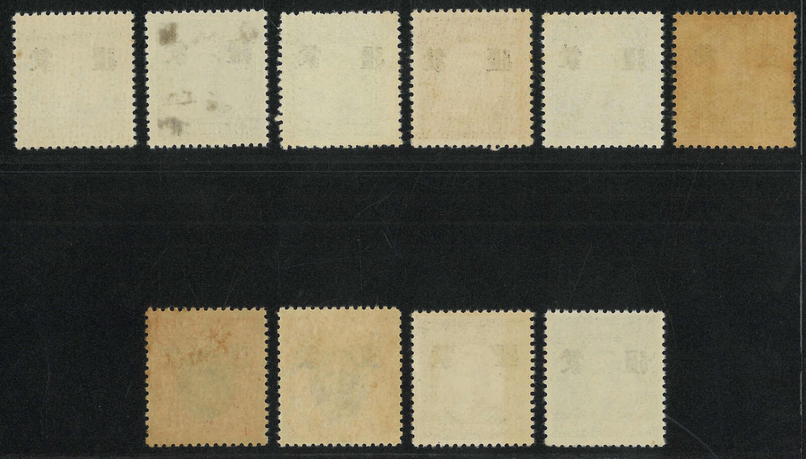 534 ** image1941 Chunghwa Print SYS (Die III) ovpt. "Mengkiang" in large charater set of 9 (Chan JM48-55), missing 5c and supplemented by a ovpt. small character 5c. MNH.