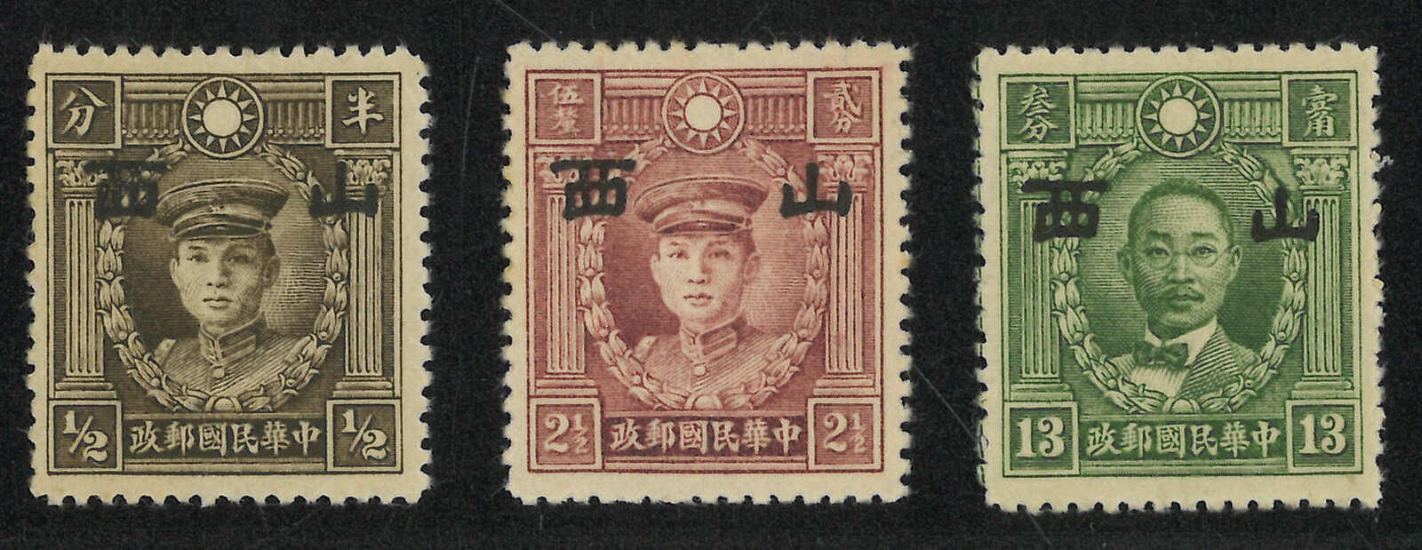 477 **/bof image1941 Peking Print Martyrs ovpt. "Shansi" in small character complete set (Chan JN128-130), MNH with original gum.