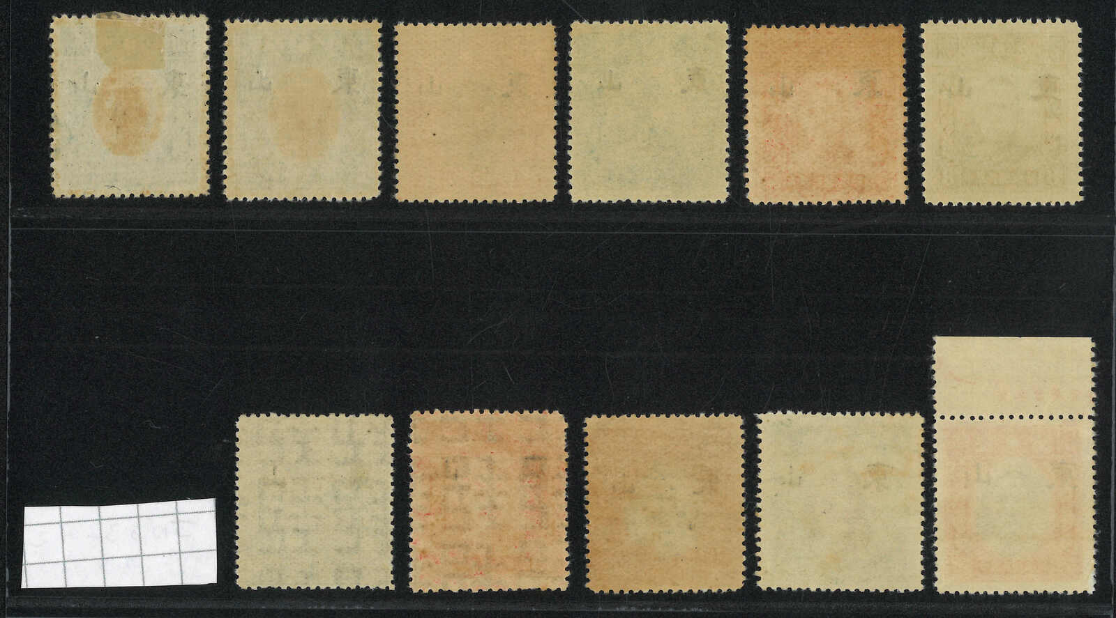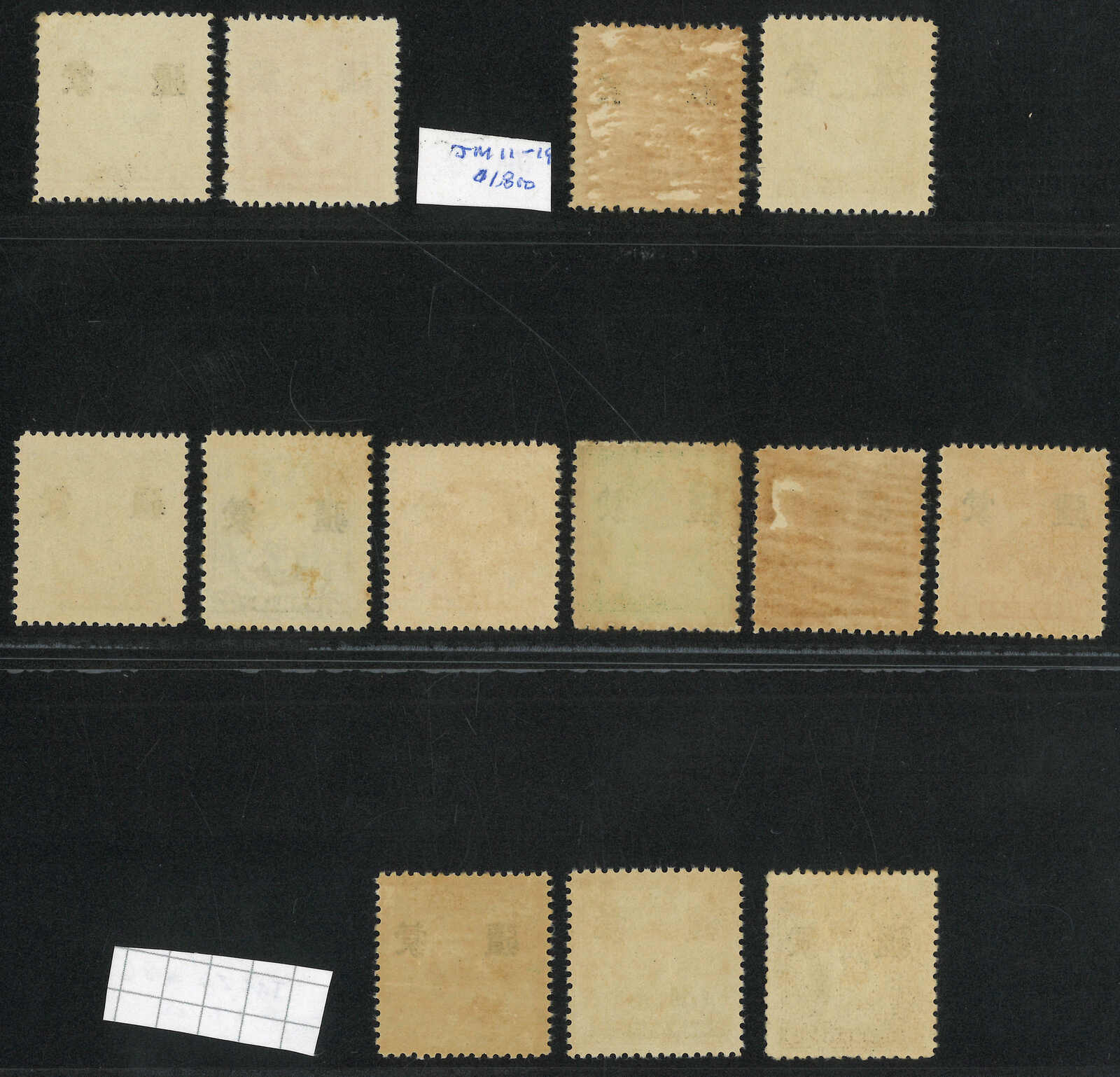 537 * image1941 Hong Kong print unwmk Martyrs ovpt. "Mengkiang" in large character complete set (Chan JM74-86), 1c stamp without secret mark. MNH/MH.