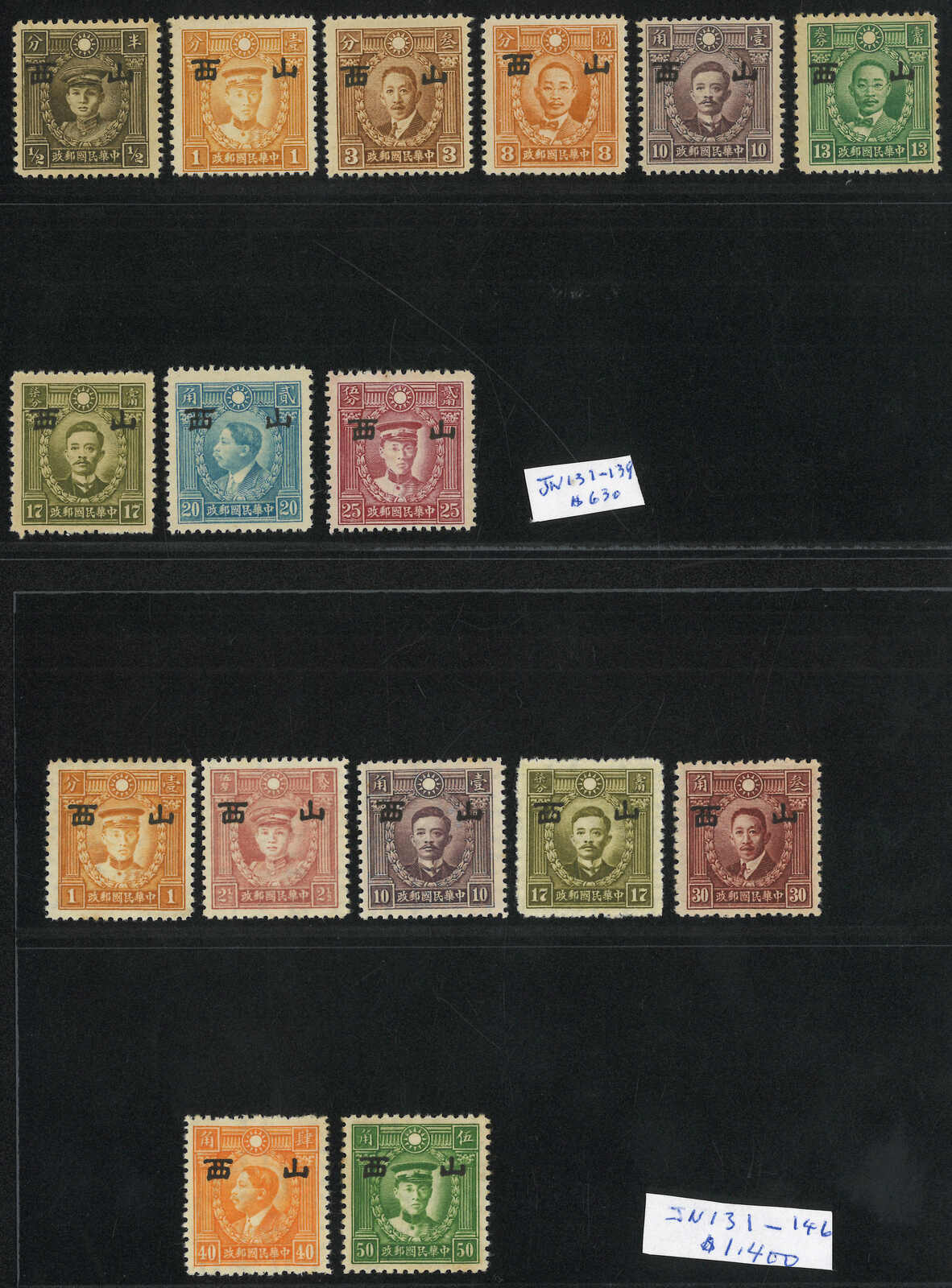 1941年香港版無水印及有水印烈士加蓋小字“山西”新全(陳目JN131-146),無貼/背貼。(Image 1) (Image 2)