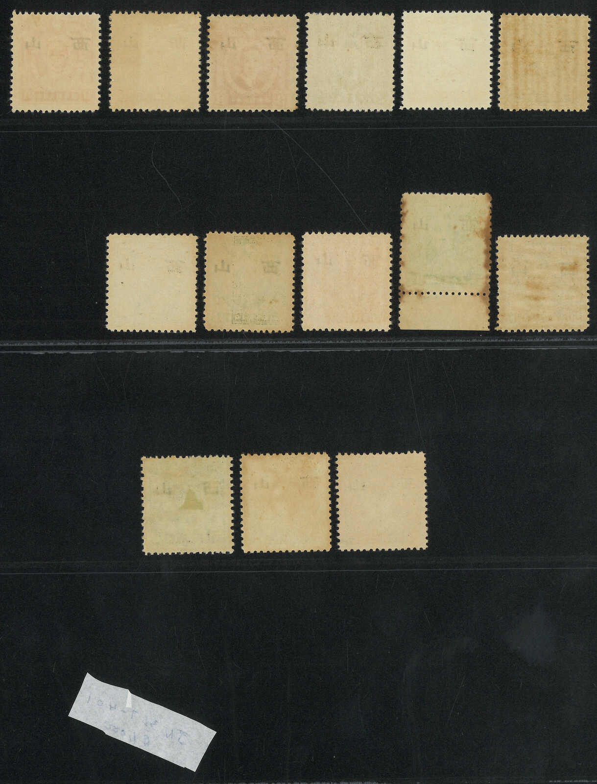 482 * image1941 Hong Kong Print unwmk Martyrs ovpt. "Shansi" in large character set of 14 (Chan JN387-401), missing 21c otherwise complete. 13c with stain. MNH/MH. Slight toning spots on reverse.