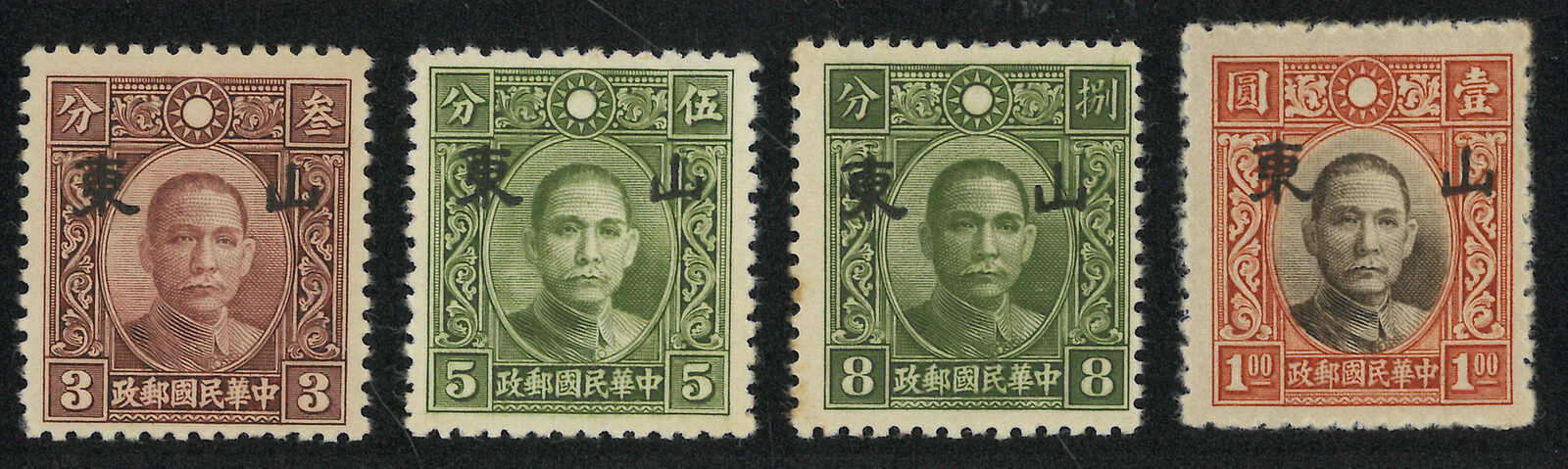 1941年中華版孫像(實心全鈕)加蓋小字“山東”新全(陳目JN79-82),無貼/輕貼。(Image 1)