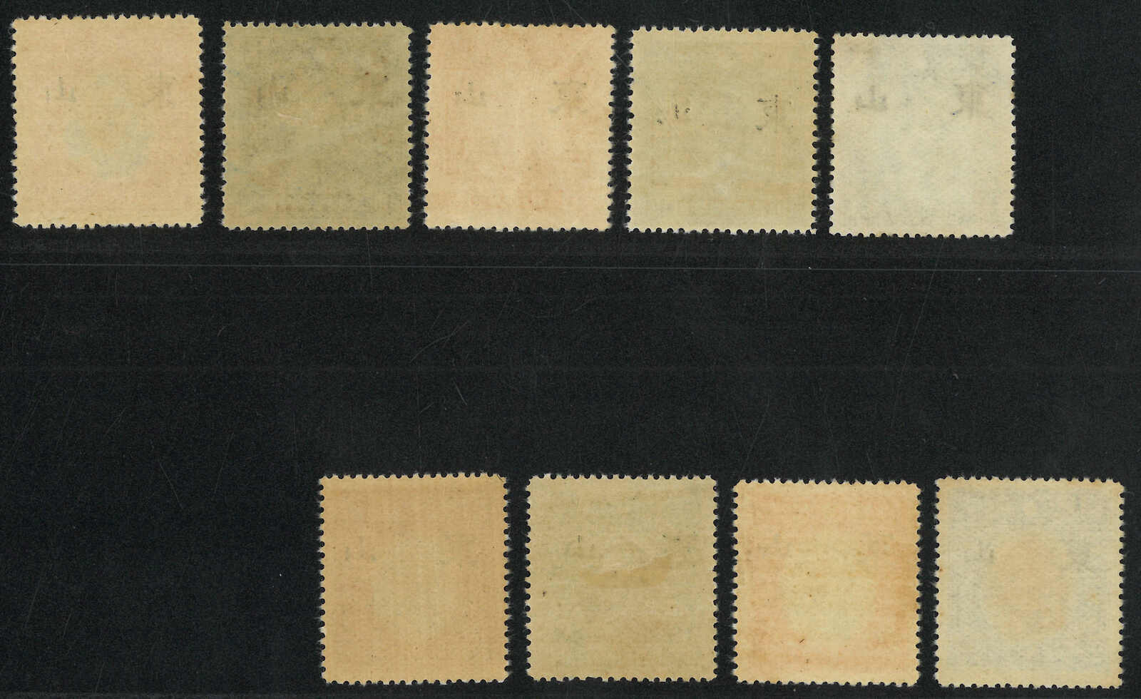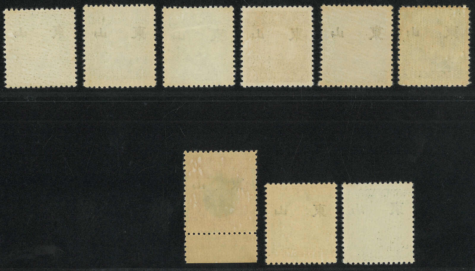 1941 Chunghwa Print (Die III) SYS ovpt. "Shantung" in large character set of 9 (Chan JN308-315), missing $1 and $2, otherwise complete. MNH/MLH.