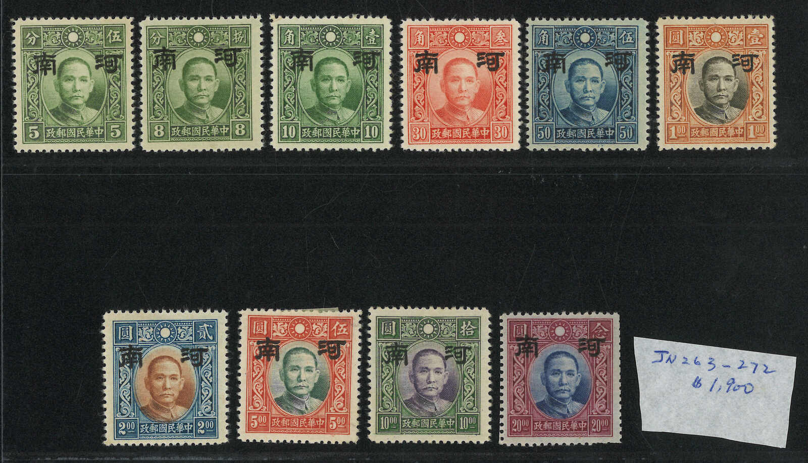 1941年大東版無水印孫像加蓋大字“河南”新全(陳目JN263-272),無貼/背貼。(Image 1)