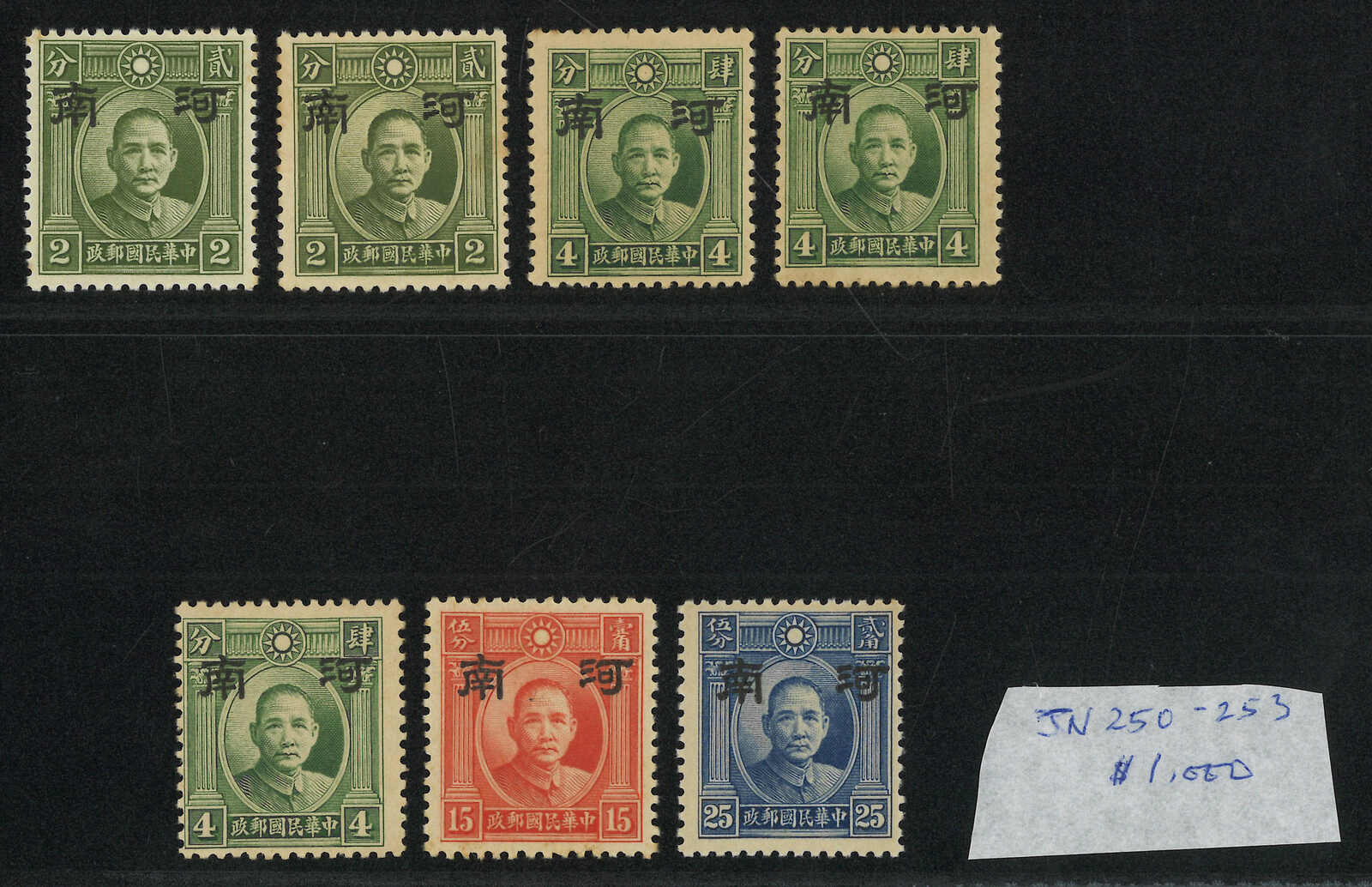1941年倫敦二版孫像加蓋大字“河南”新全(陳目JN250-253),無貼,背微黃。(Image 1)