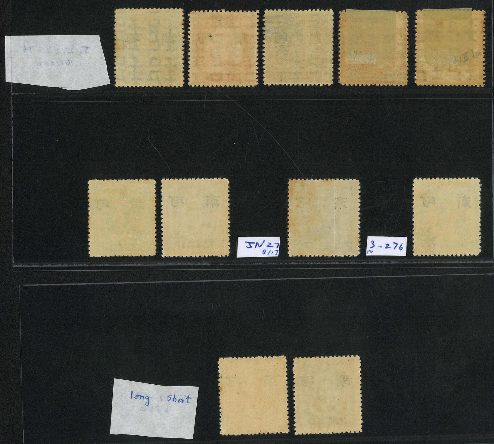1941年倫敦二版孫像加蓋小字“河南”新全(陳目JN40-43),包含多枚2分A、B及C型闊票。無貼,背微黃點。(Image 1)