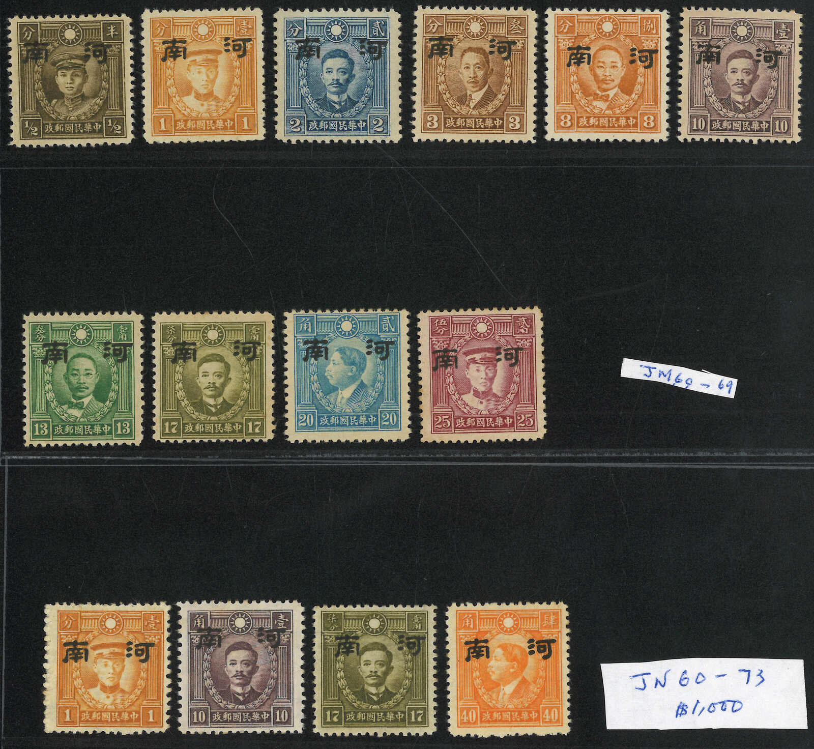 1941年中華版(實心全鈕)孫像加蓋大字“河南”新全(陳目JN254-262),欠1元否則齊全。原膠無貼。(Image 1)