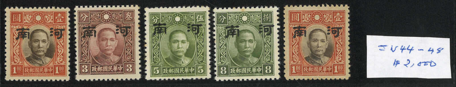 1941年中華版孫像(空心全鈕及實心全鈕)加蓋小字“河南”新全(陳目JN44-48),無貼。(Image 1)