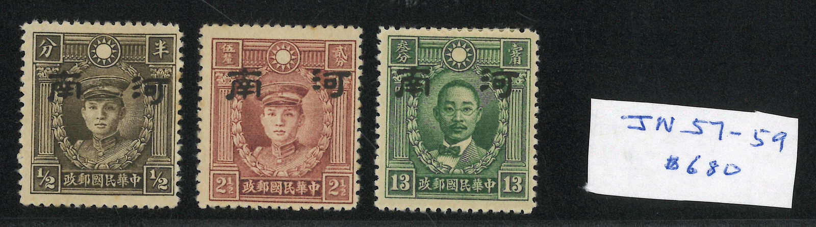 1941年北京版烈士加蓋小字“河南”新全(陳目JN57-59),背貼。(Image 1)