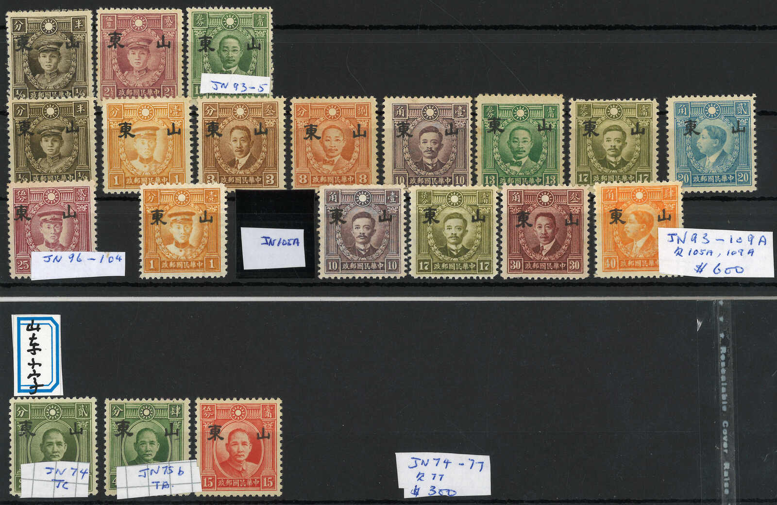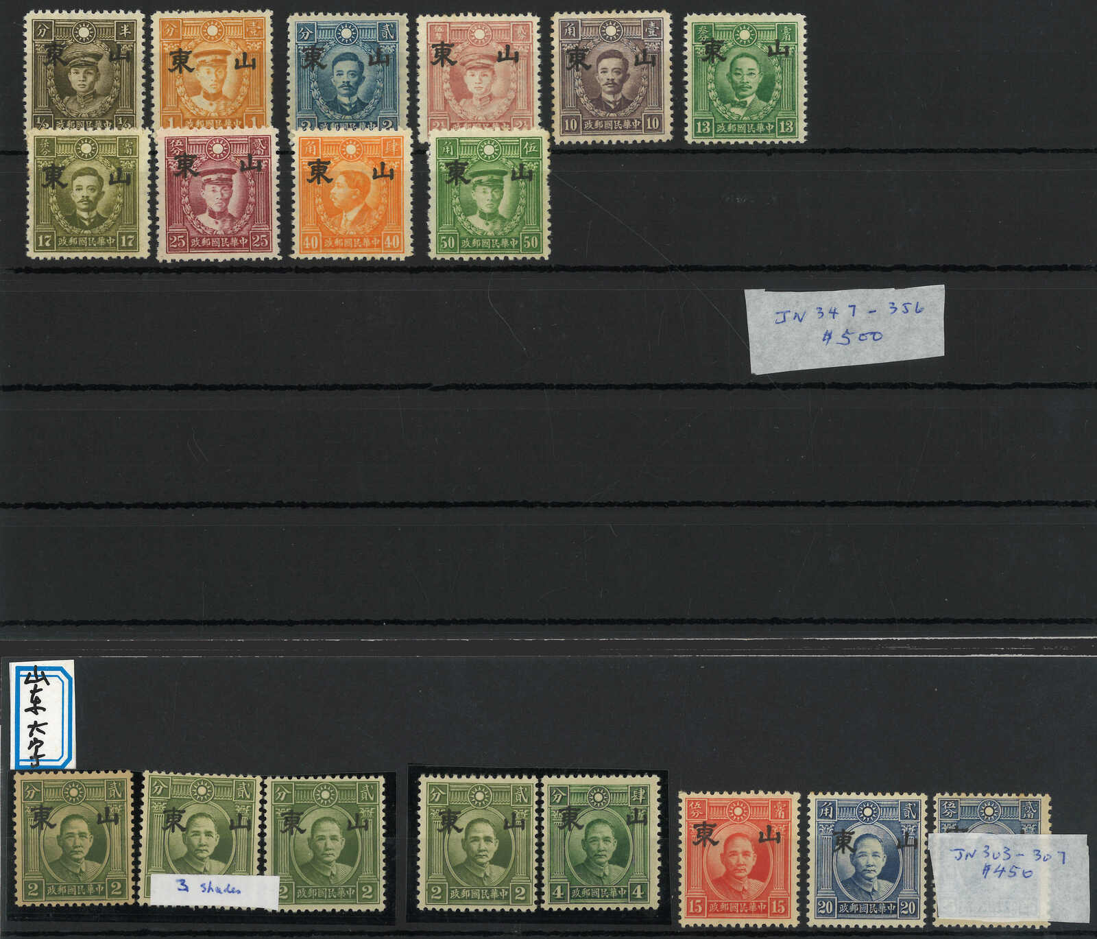 1941 a collection of 6 sets of SYS and Martyrs ovpt "Shantung" in small and large characrer issues, containing Peking, Hong Kong print Martyrs and London Print SYS. All mint.