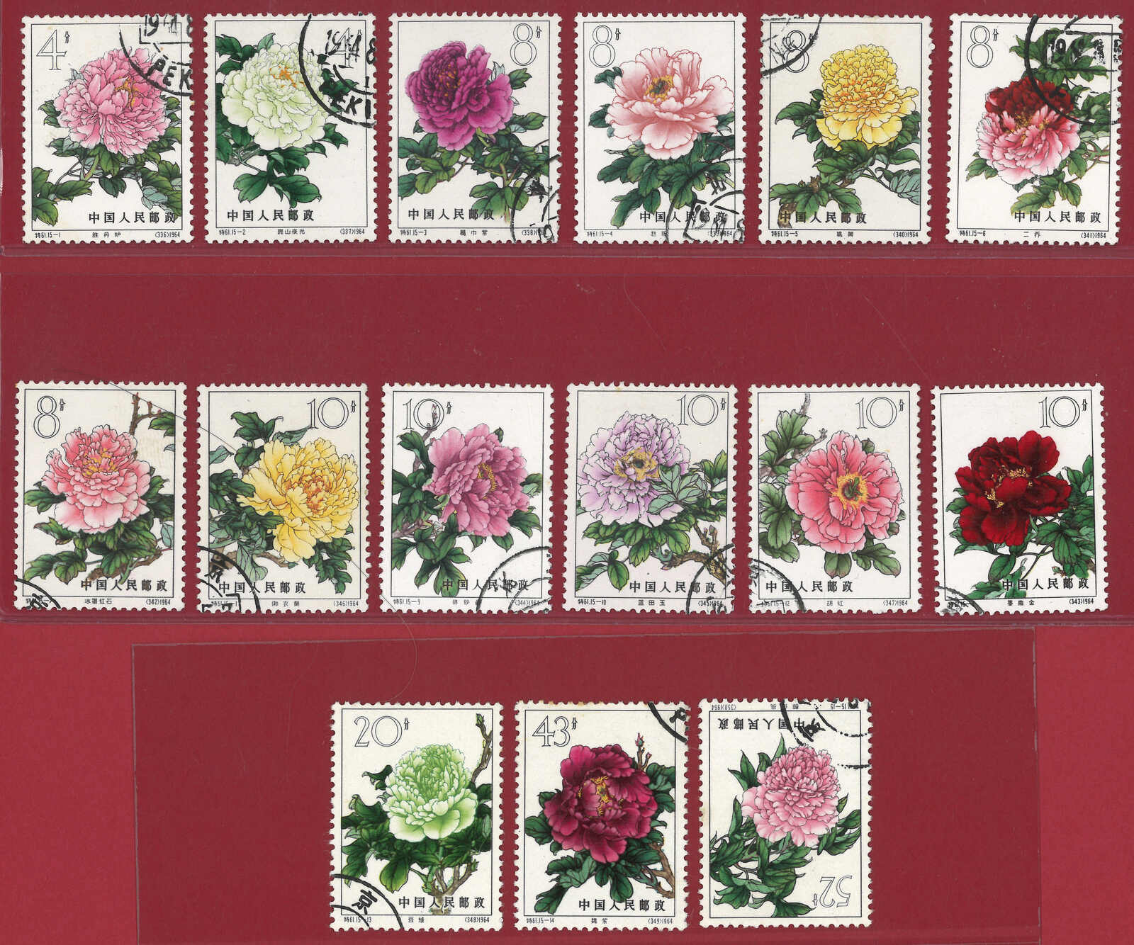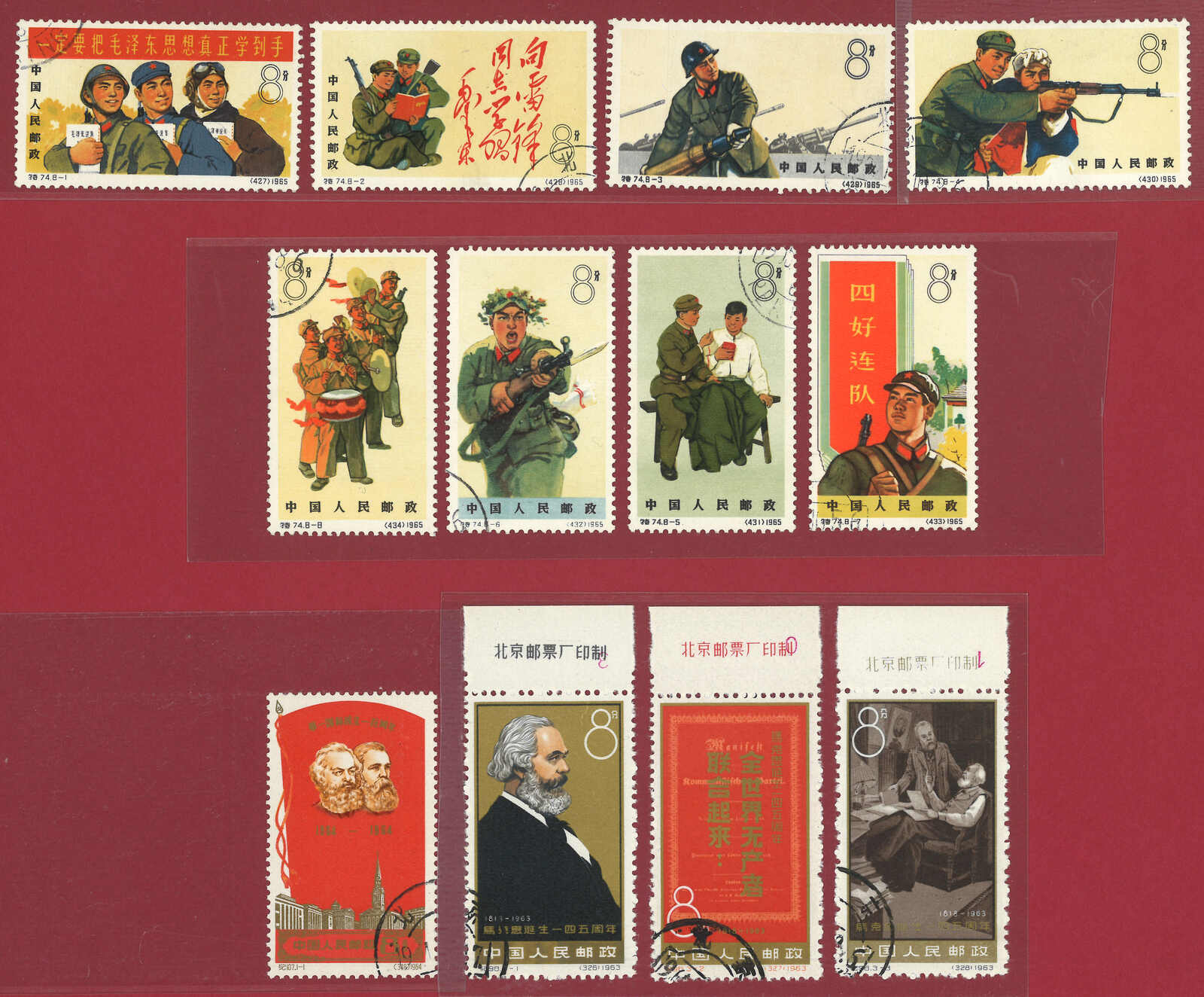 A group of 4 CTO sets of C&S series issues, including C98 Karl Marx C107 First Internatinoal, S61 Peonies and S74 Chinese PLA. Clear strike of cancellation. Nice condition.
