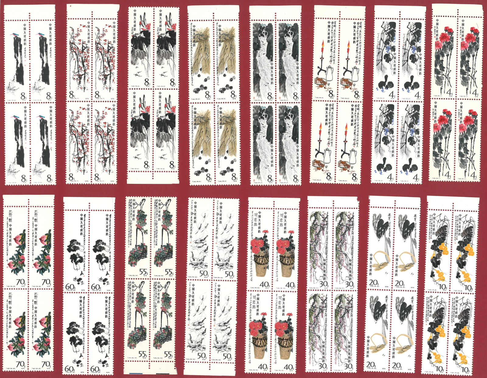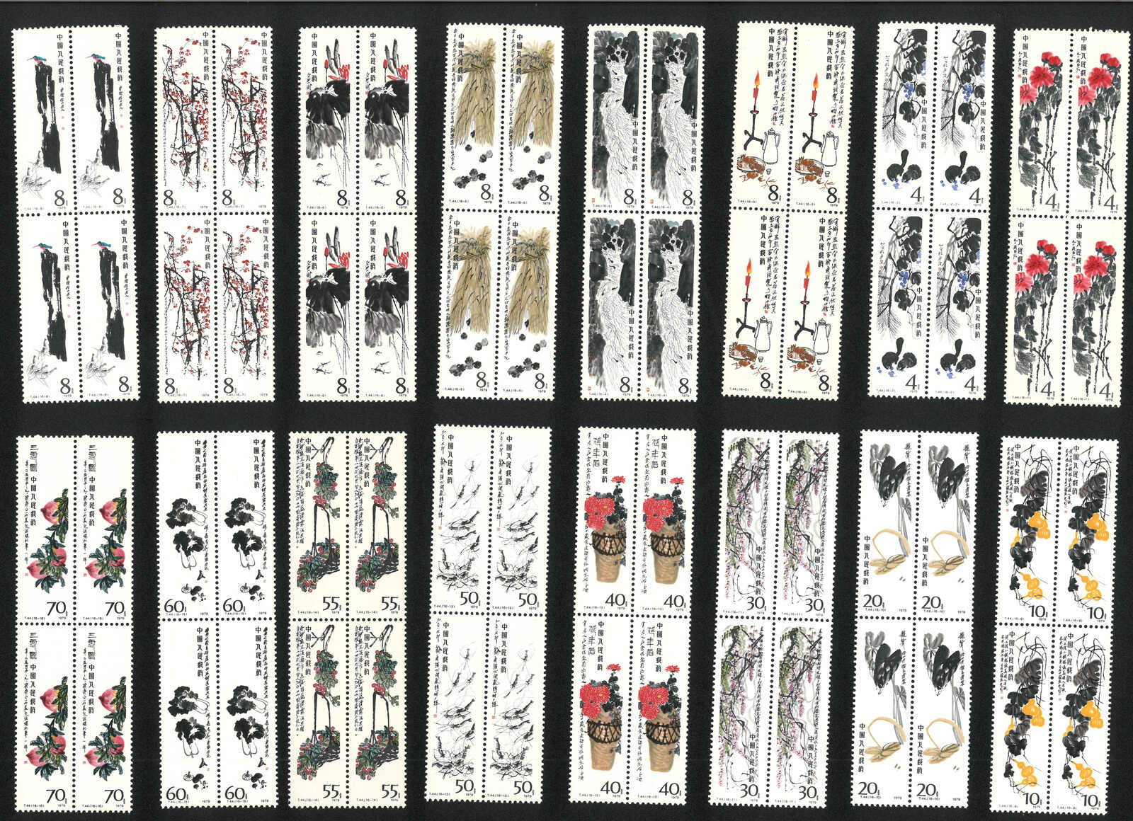 1980年T44齊白石四方連新全,原膠無貼,微黃。(Image