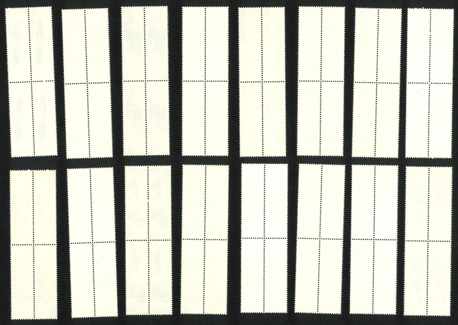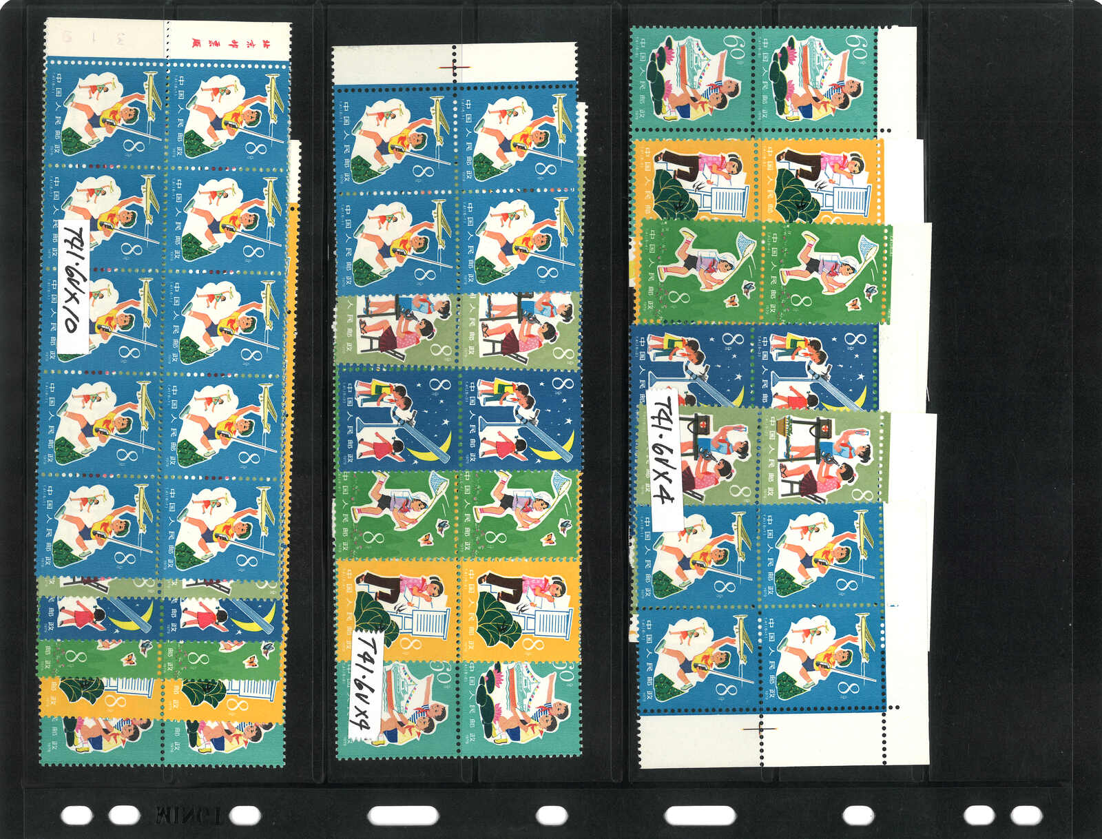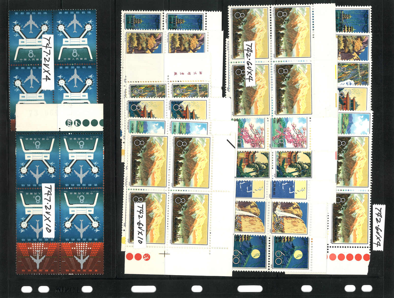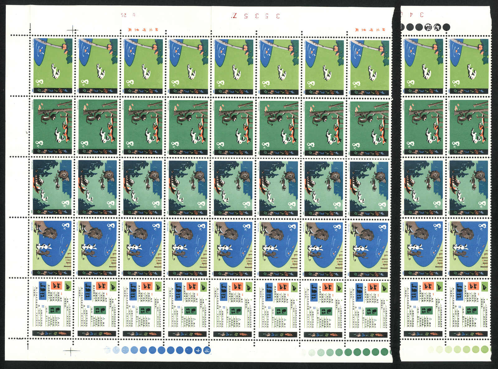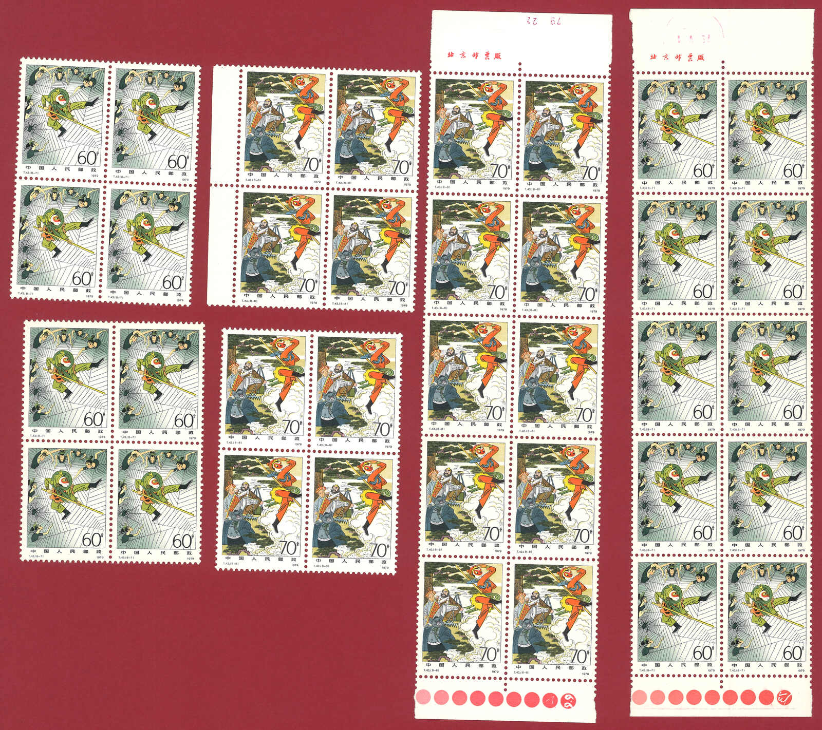 1979 T43 Chinese Classical Novel-Pilgrimage to the West complete set x18, including strips of 10 and two sets of block of 4. MNH with original gum. Light toning. Strips folded along perf.