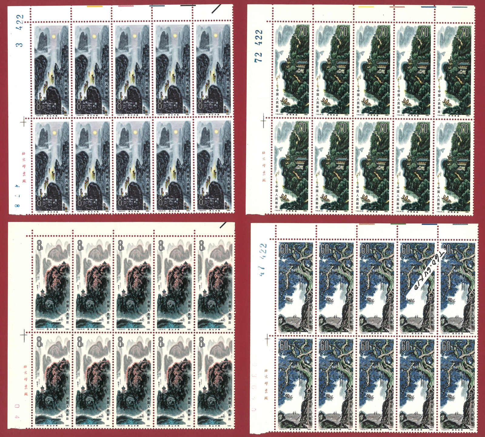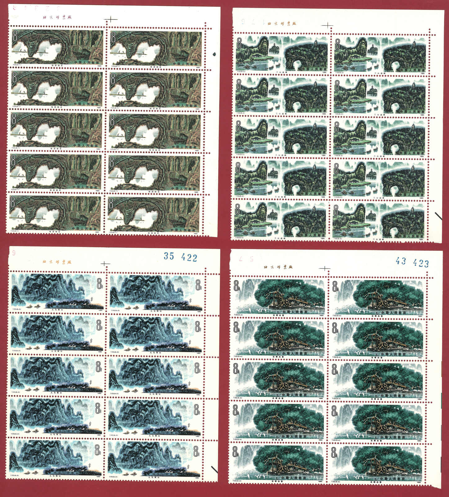 1980 T53 Guilin Landscapes complete set in block of 10 with imprint corner margin. MNH with original gum. Folded along perf. Light toning.
