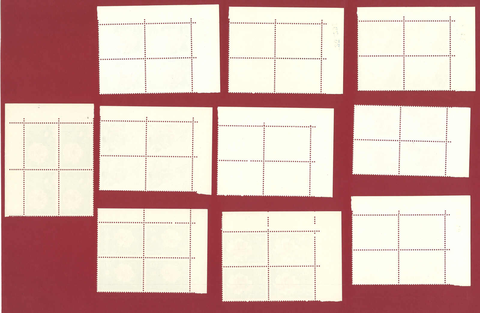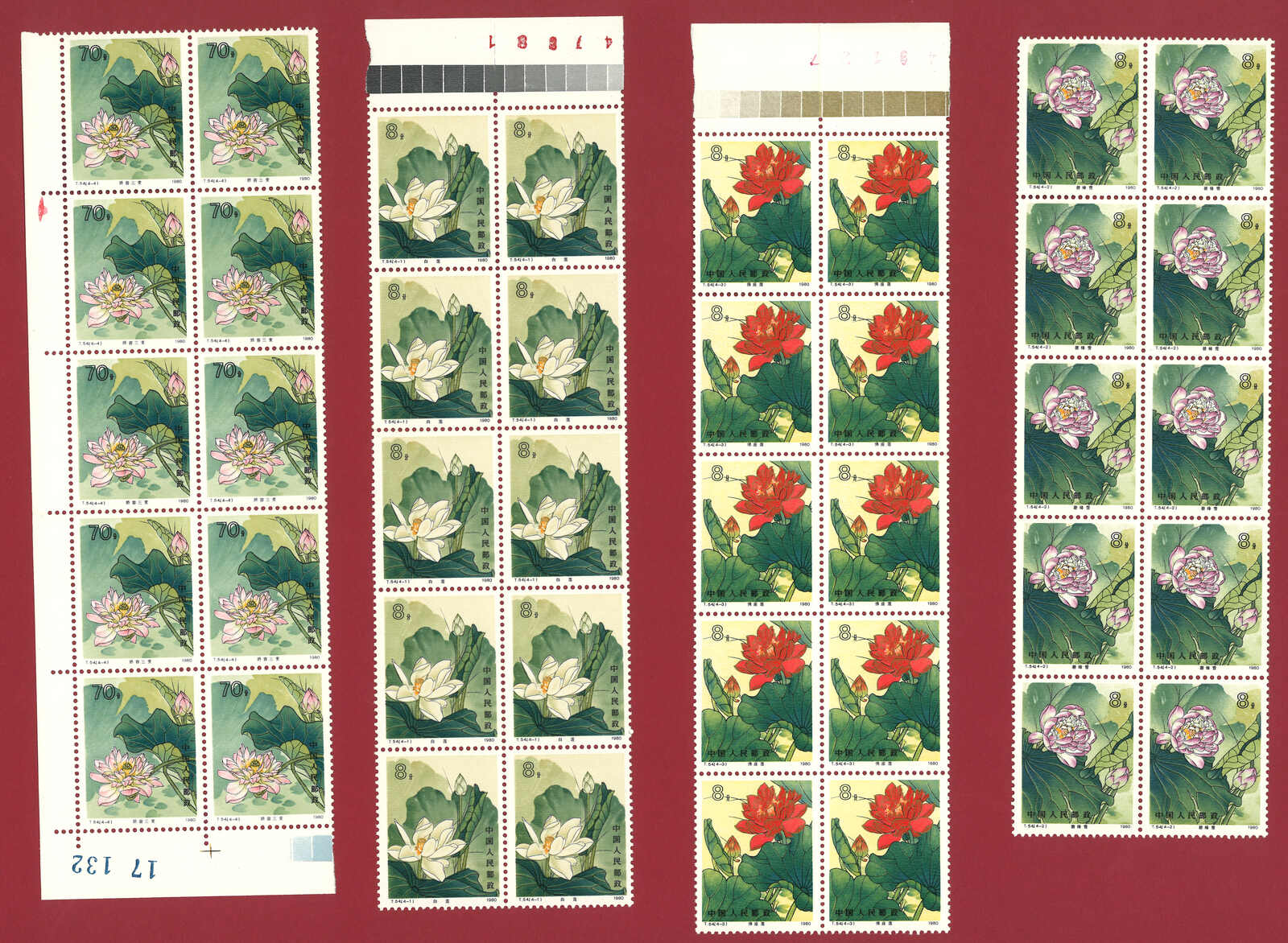 1980年T54荷花十方連新全,部分帶色標或直角邊。原膠無貼,齒間有折,微黃。(Image 1)