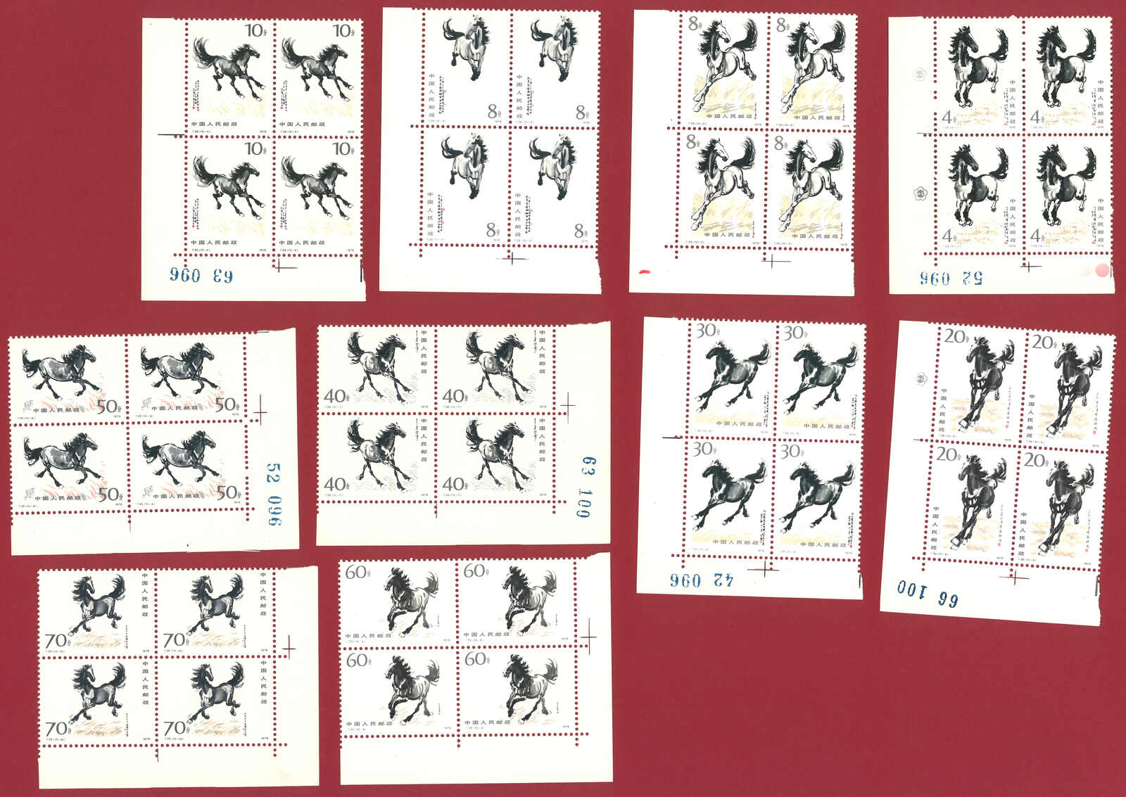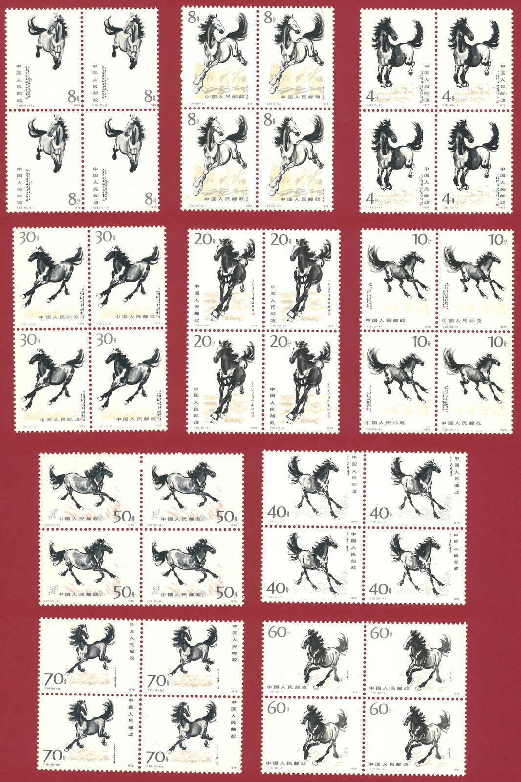 1978年T28奔馬四方連新全。原膠無貼,微黃。(Image