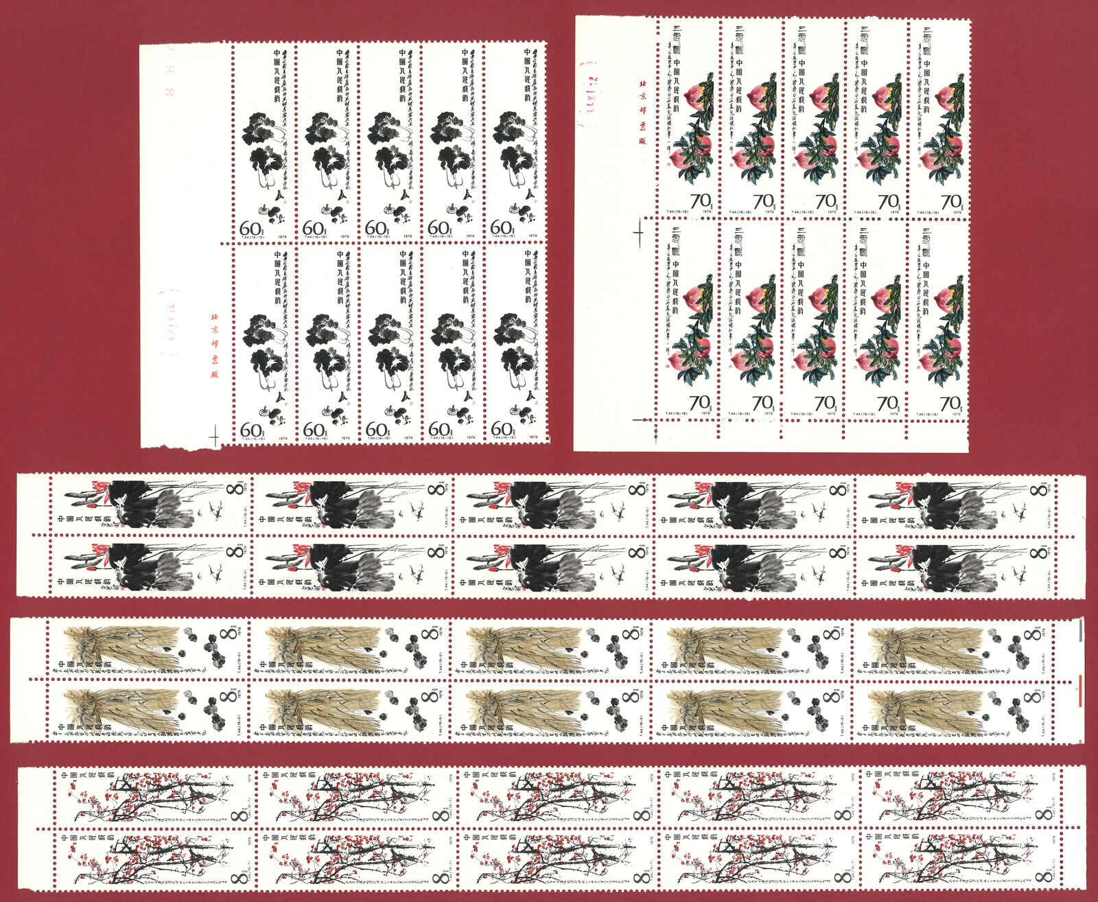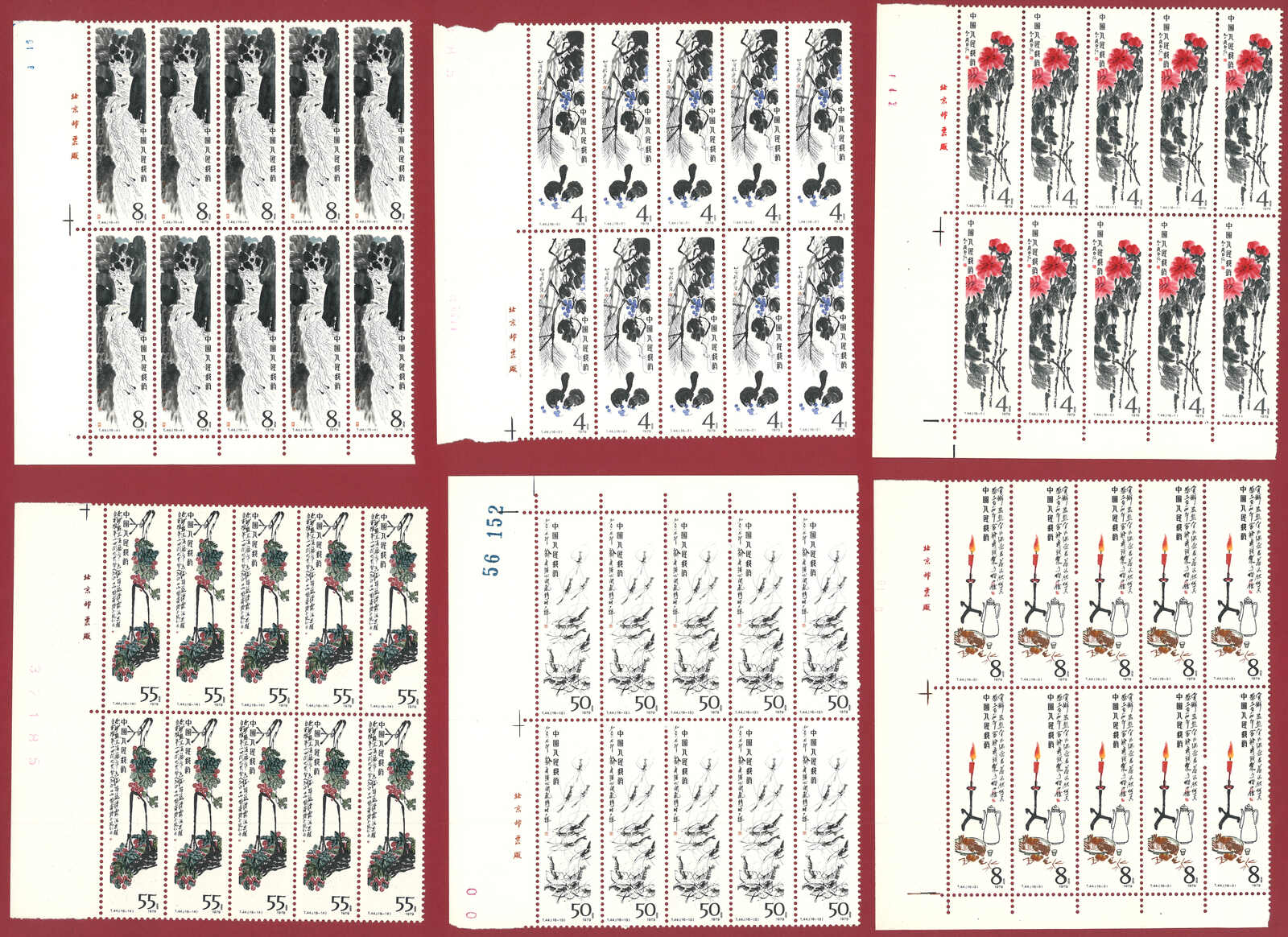 1980 T44 Qi Baishi Paintings complete set in block of 4. MNH with original gum. Light toning.