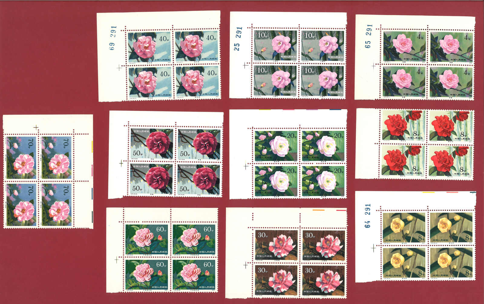 1979年T37山茶花四方連新,帶左直角邊。原膠無貼,微黃。(Image 1)