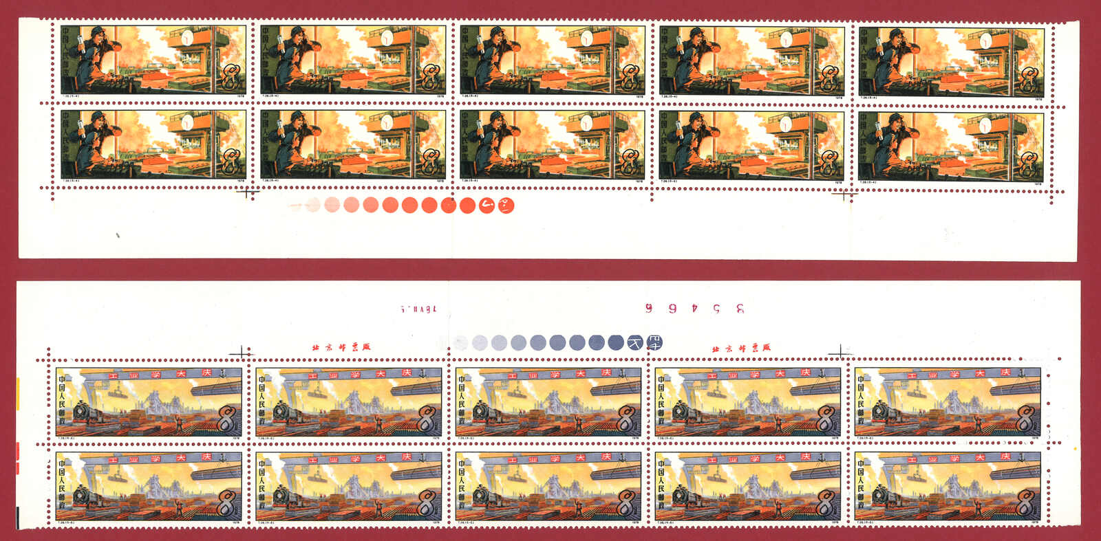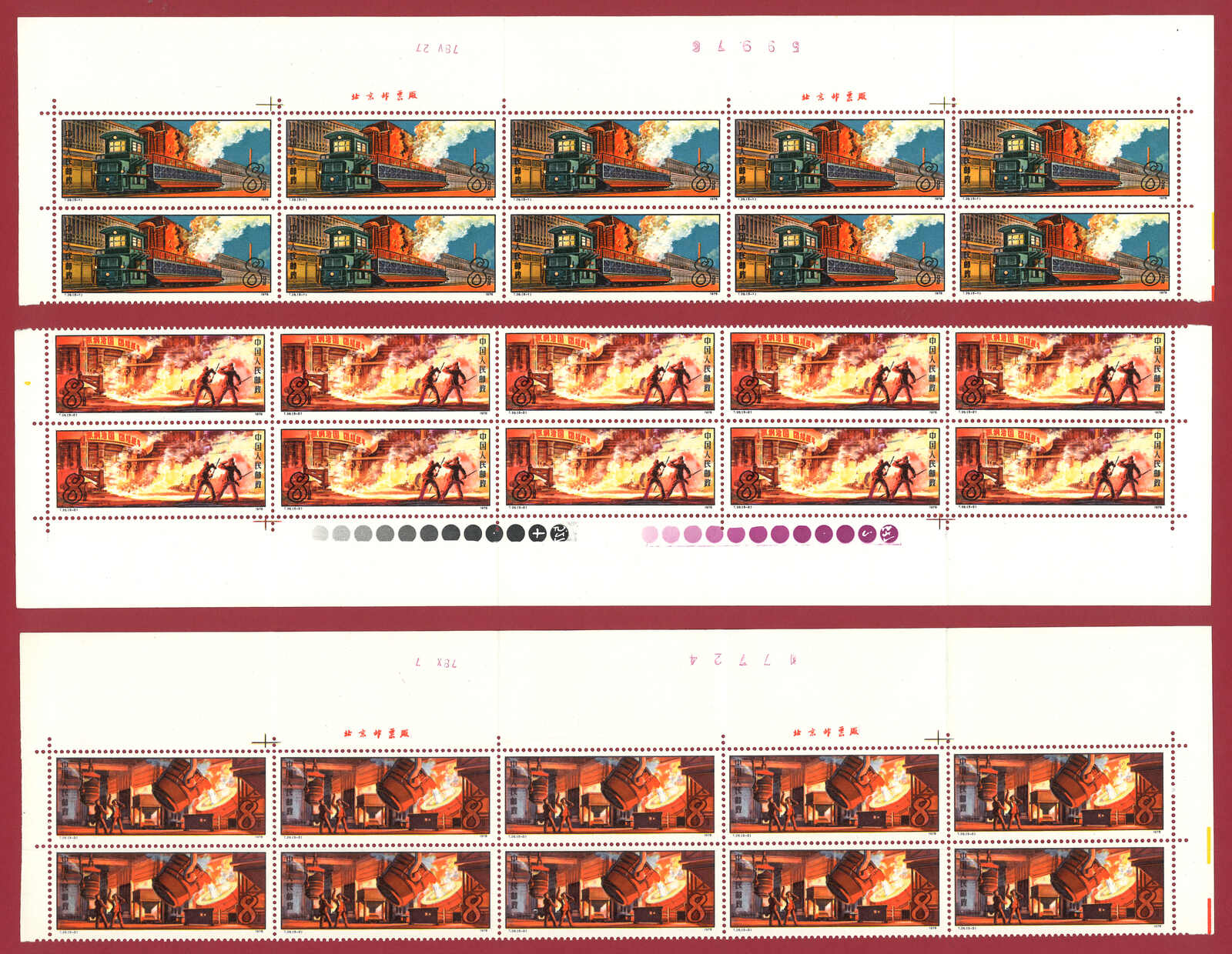 1978 T26 Iron and Steel Industry complete set in strip of 10 with imprint margin. MNH with original gum. Light toning. Folded along perf.