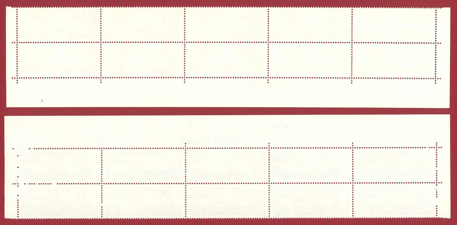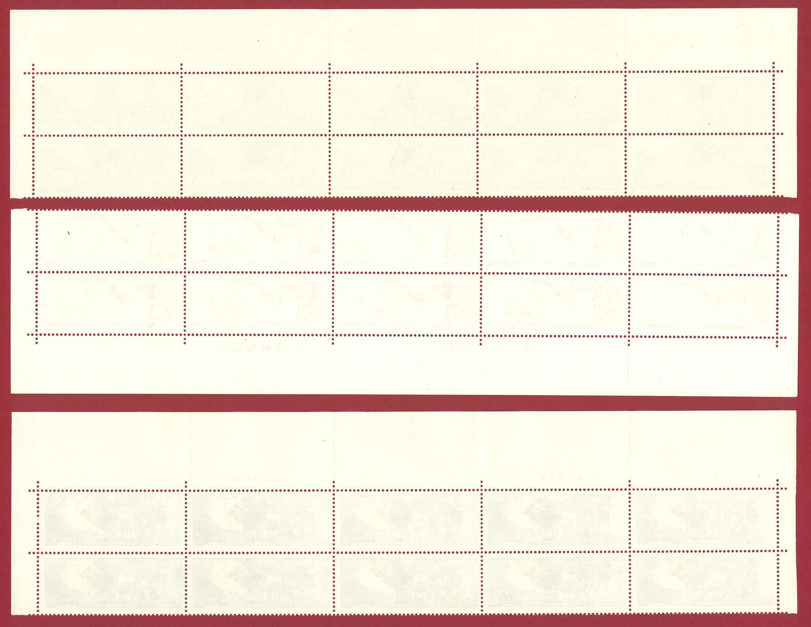 1980 T50 Kites complete set in strip of 10 with top imprint margin and bottom colour plate. MNH with original gum. Folded along perf. Light toning.