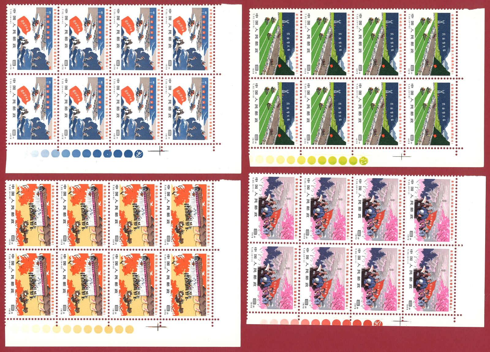 1977 T22 Building Tachai-Type Countries Throughout the Country complete set in block of 8 with top right corner margin and colour plate, MNH with original gum. Light toning.