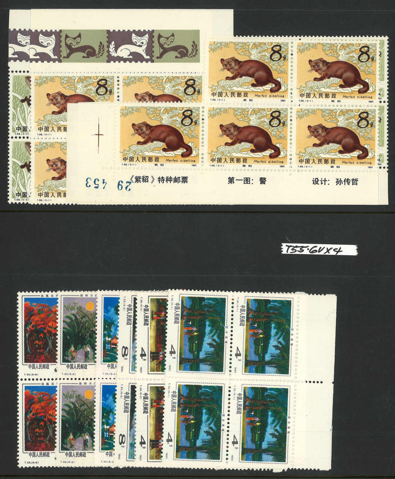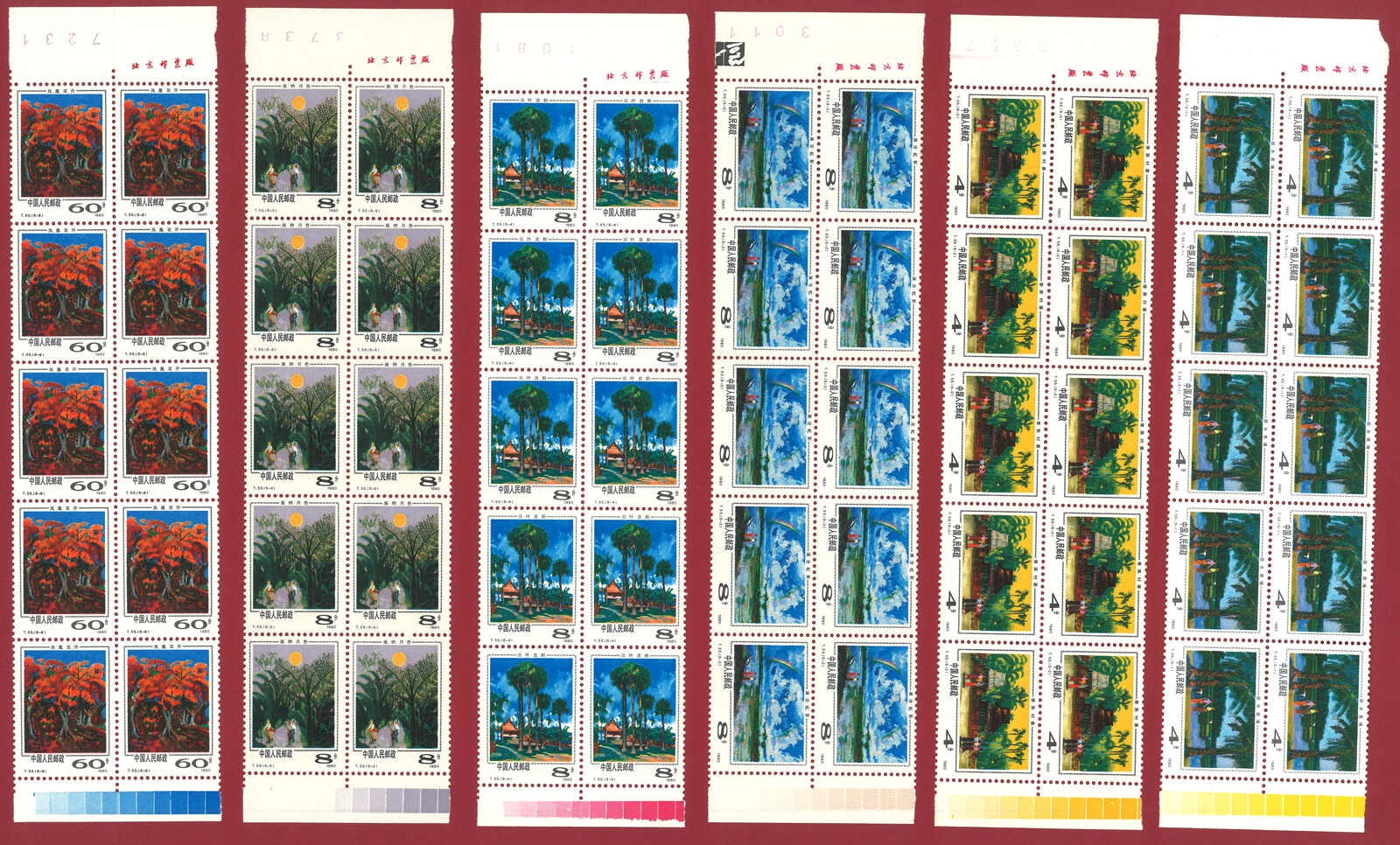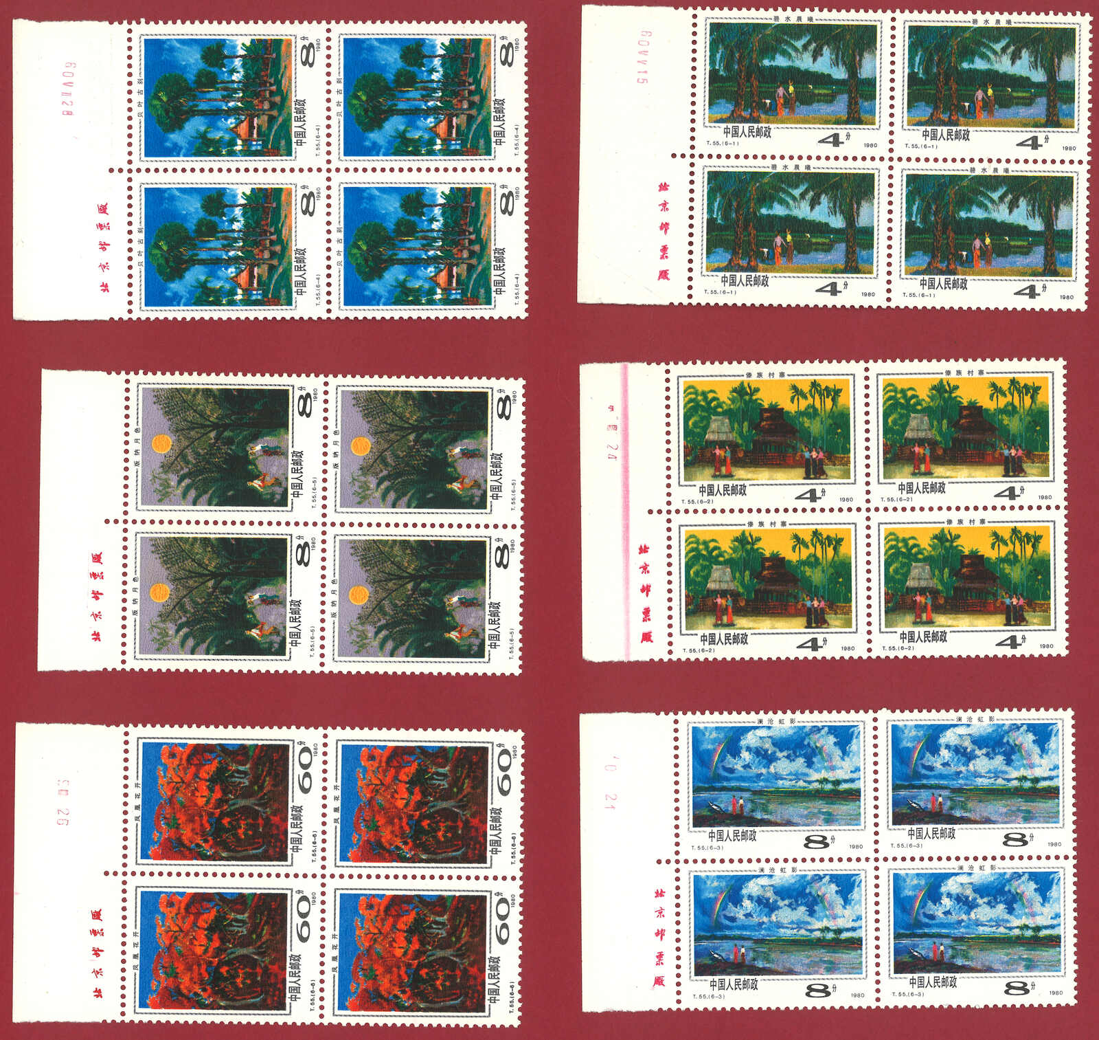 1981 T55 Scenes of Xishuang Banna complete set in block of 4 with imprint margin. MNH with original gum. Light toning.