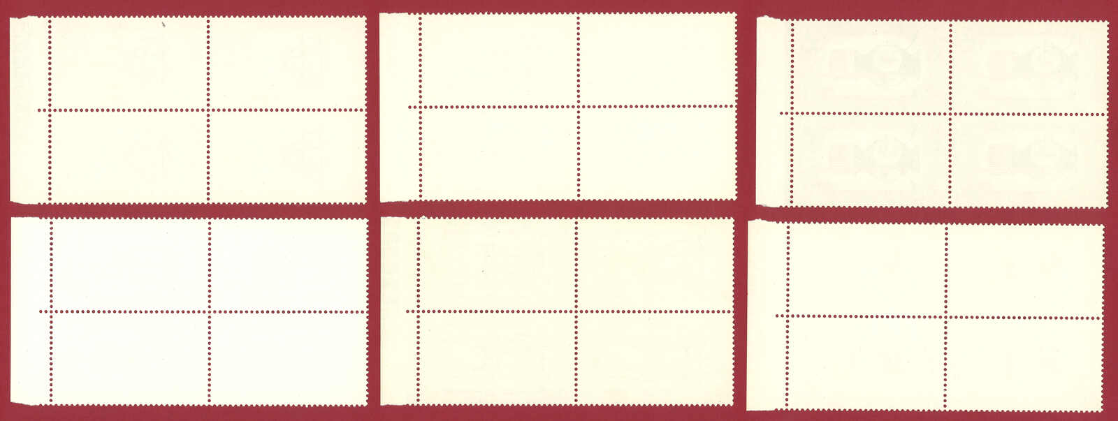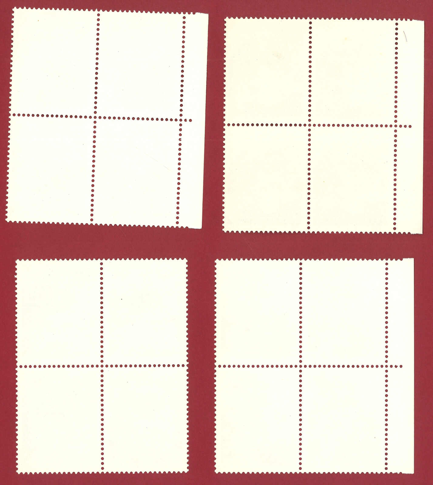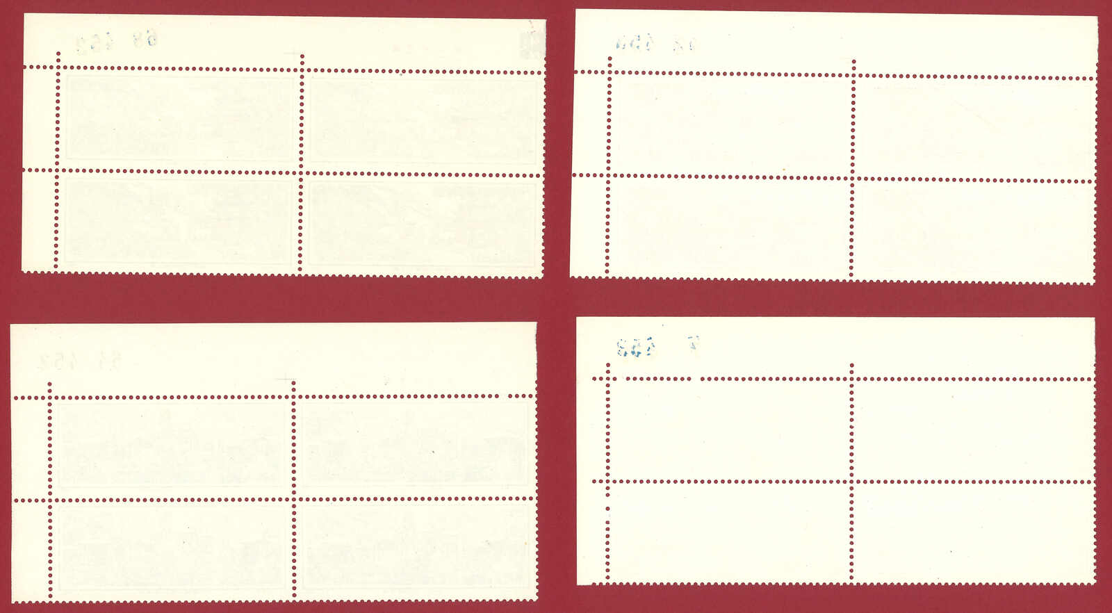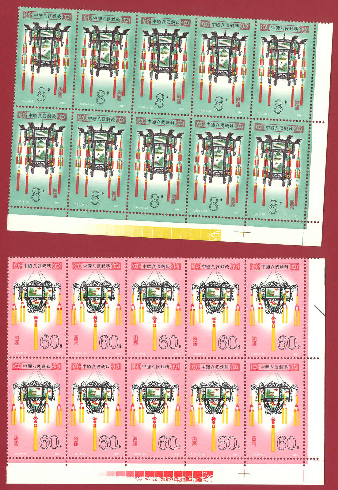 1981年T60宮燈四方連新全帶邊紙,部分帶色標。原膠無貼,微黃。齒間有折。(Image 1)