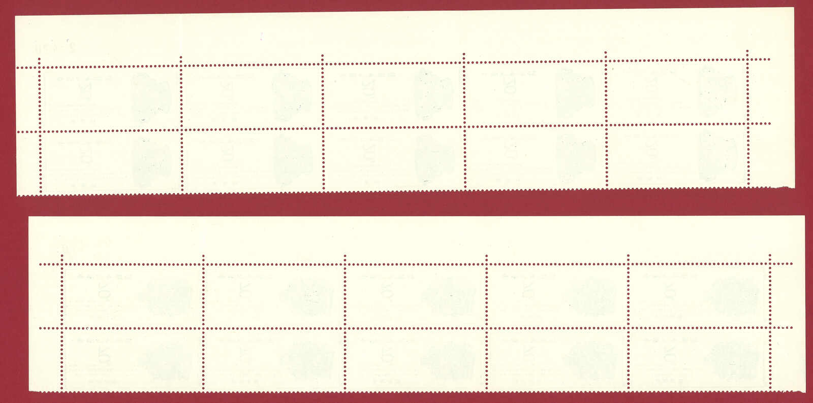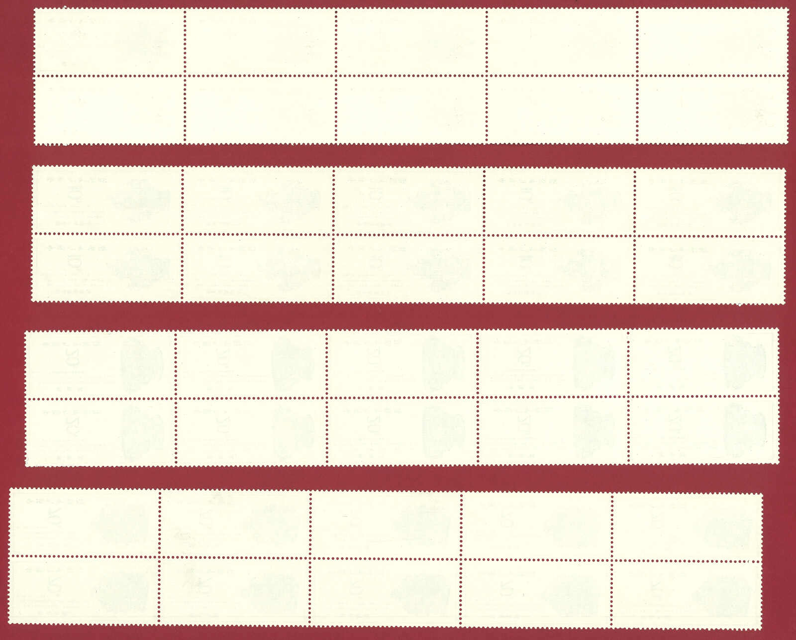 1982年T71錢幣(二)十方連新全2套,共20套票。原膠無貼,微黃。齒間有折。(Image 1)