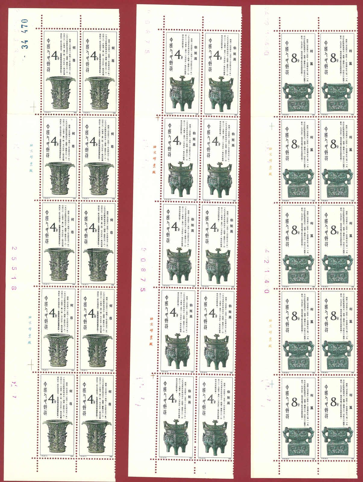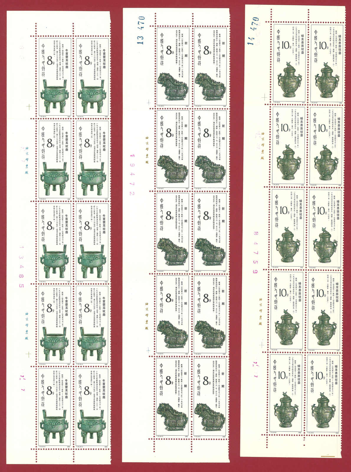 1982 T75 Bronzes of Western Zhou Dynasty complete set in strip of 10 with left imprint and plate number. MNH with original gum. Folded along perf. Light toning.