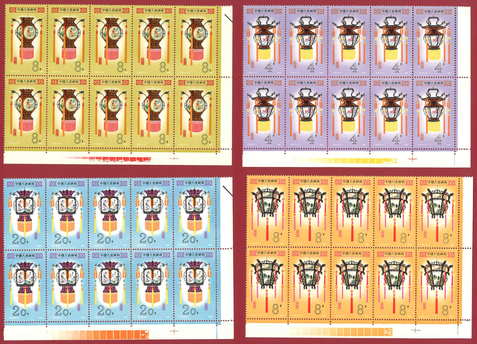 1981 T60 Palace Lanterns complete set in block of 4 with margin, partly with colour plate. MNH with original gum. Light toning. Folded along perf.