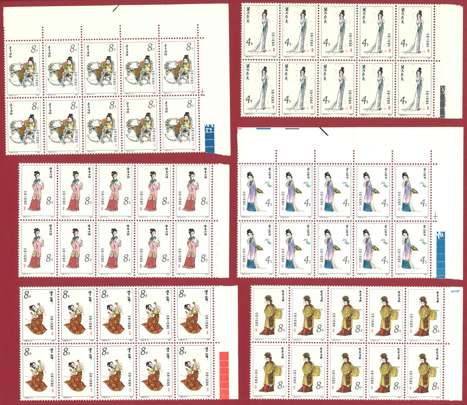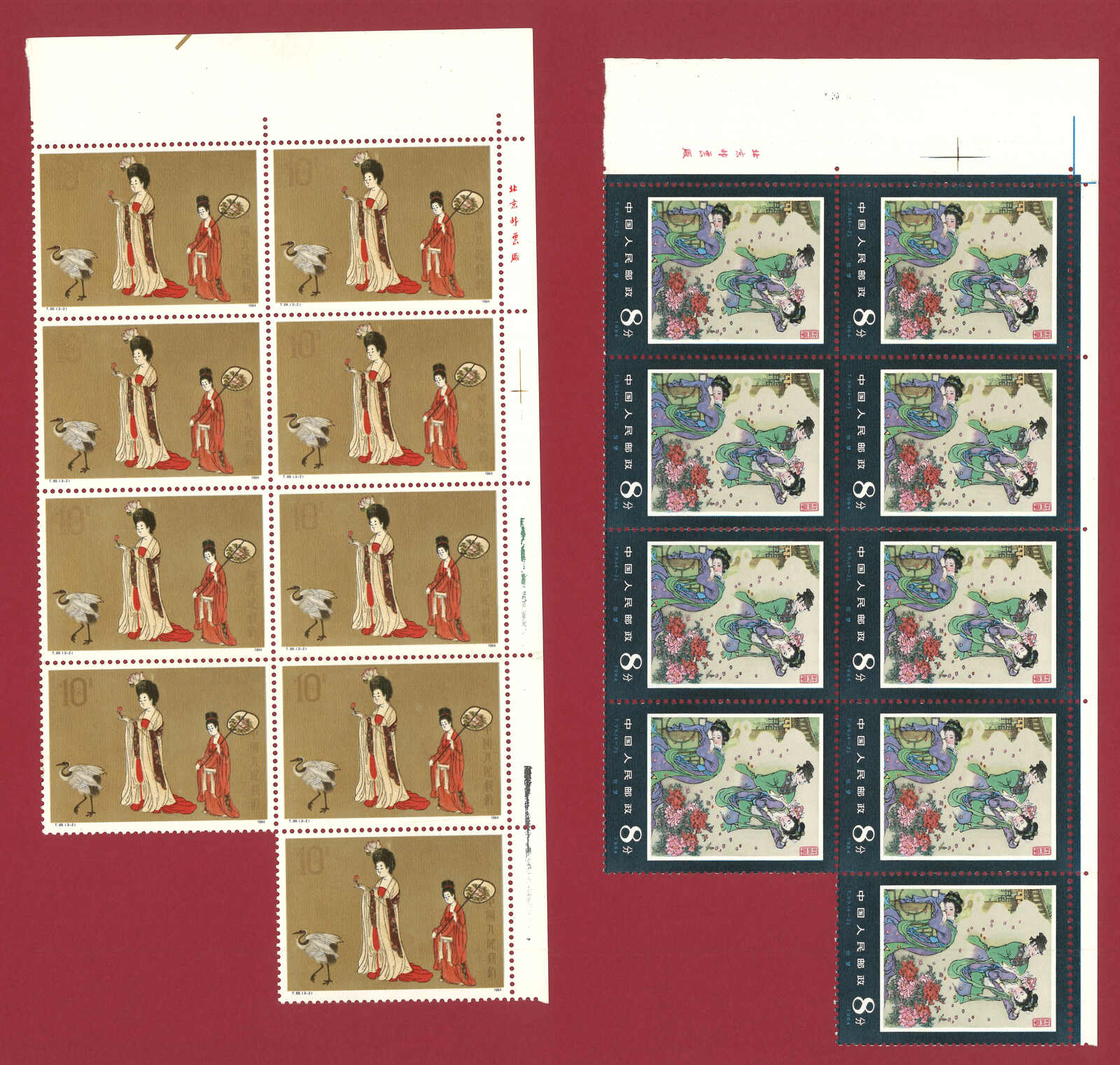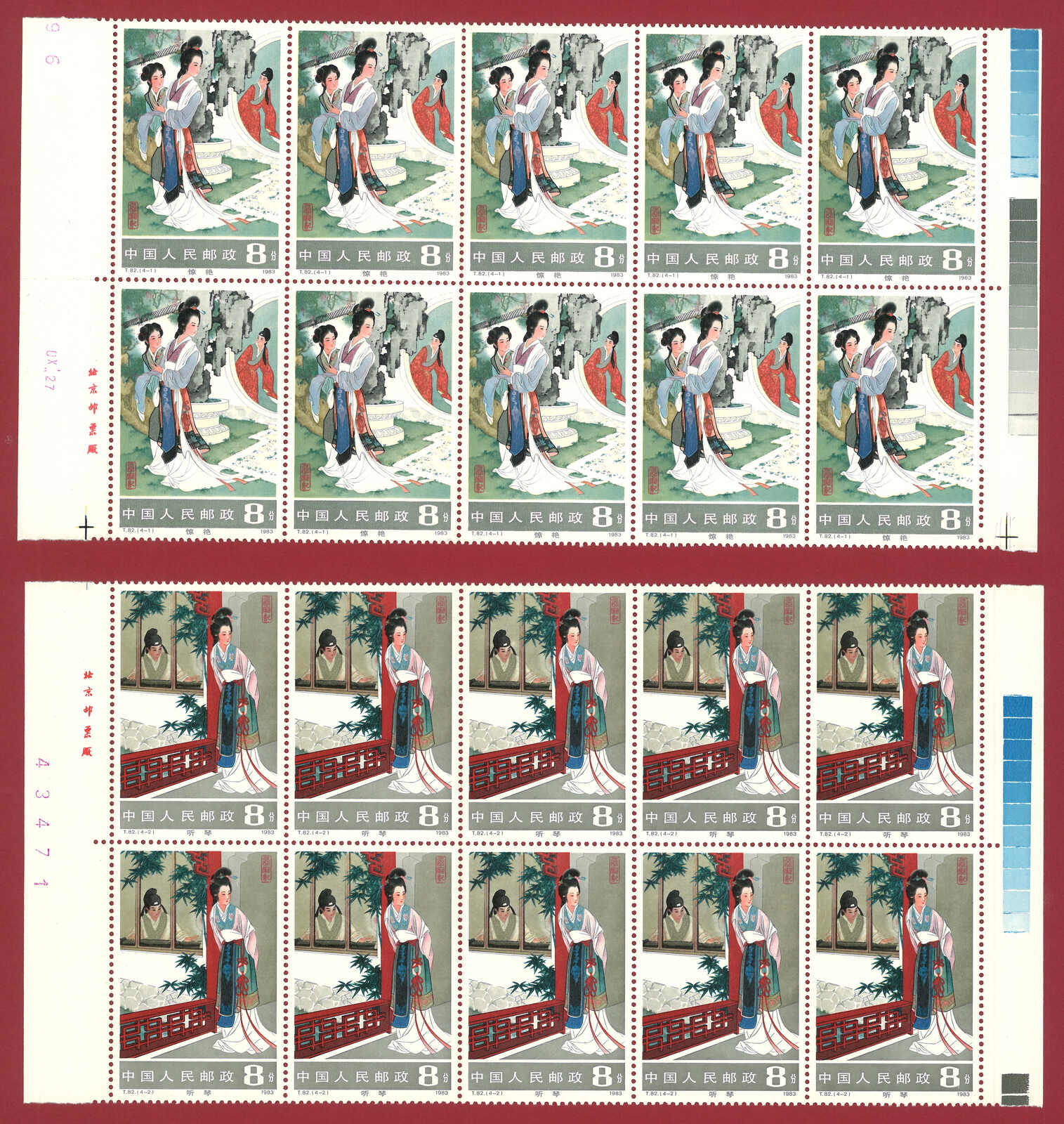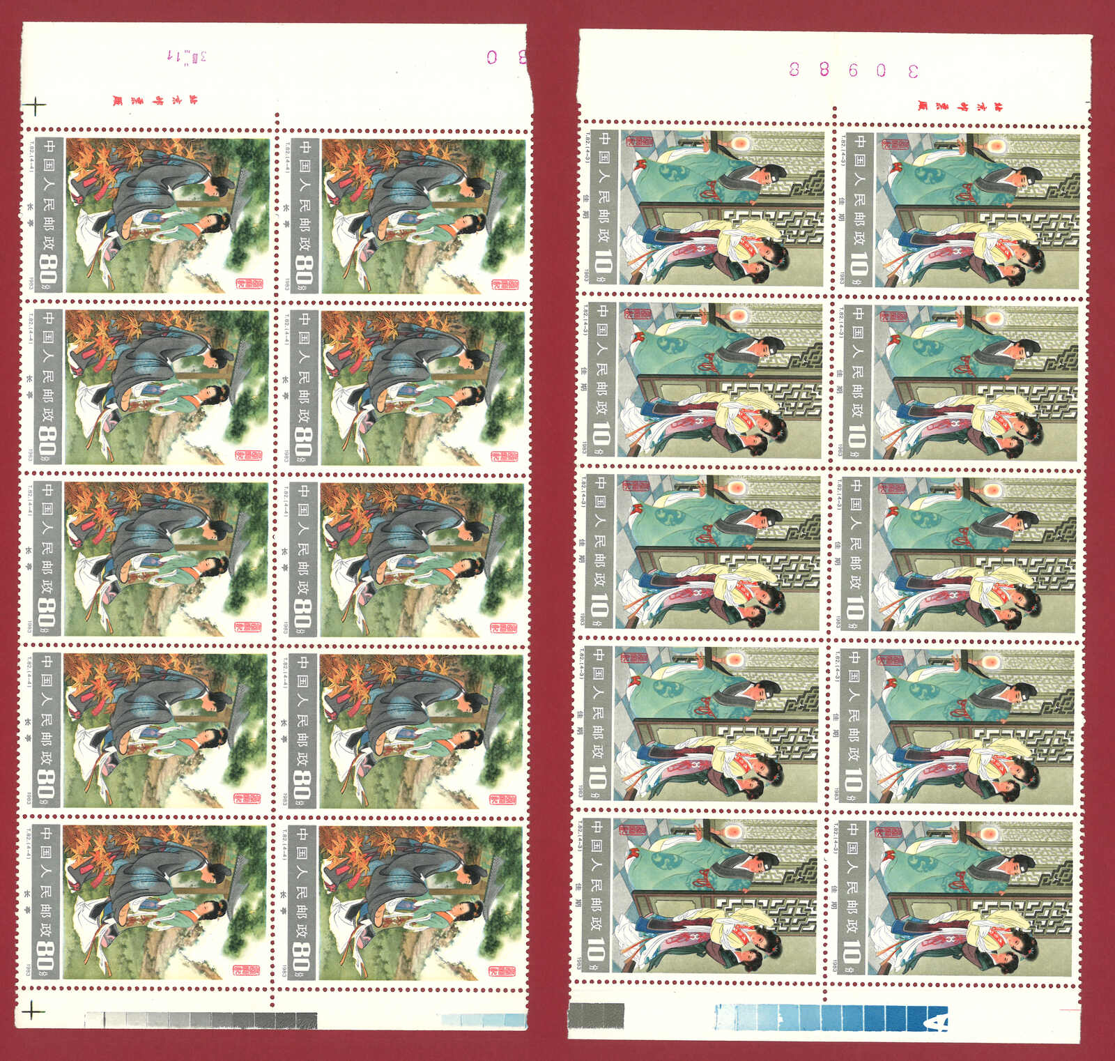 1981 T69 Dream of Red Mansions complete set in block of 10, with right margin or top right corner margin. Partly with colour plate. MNH with original gum. Folded along perf. Light toning.