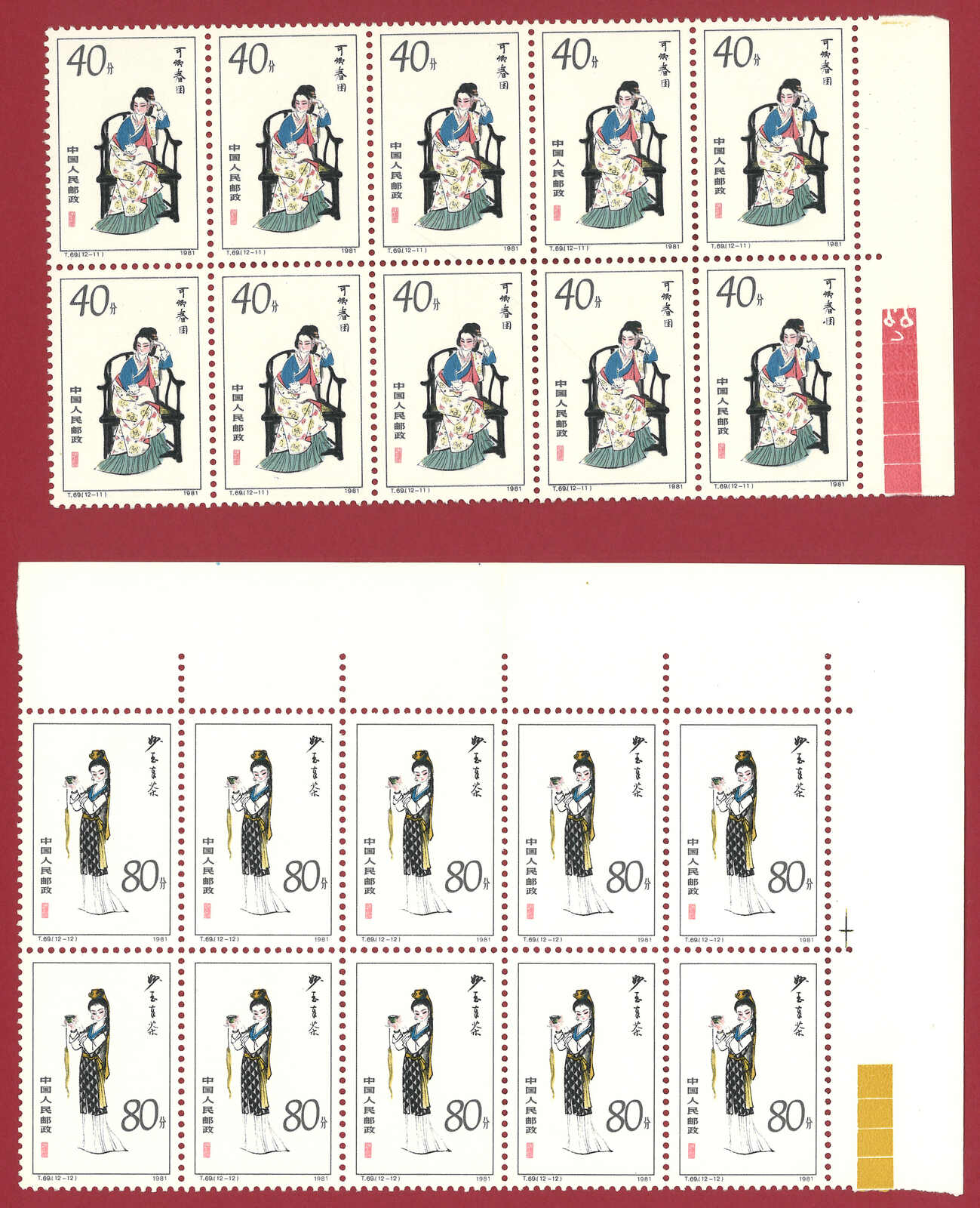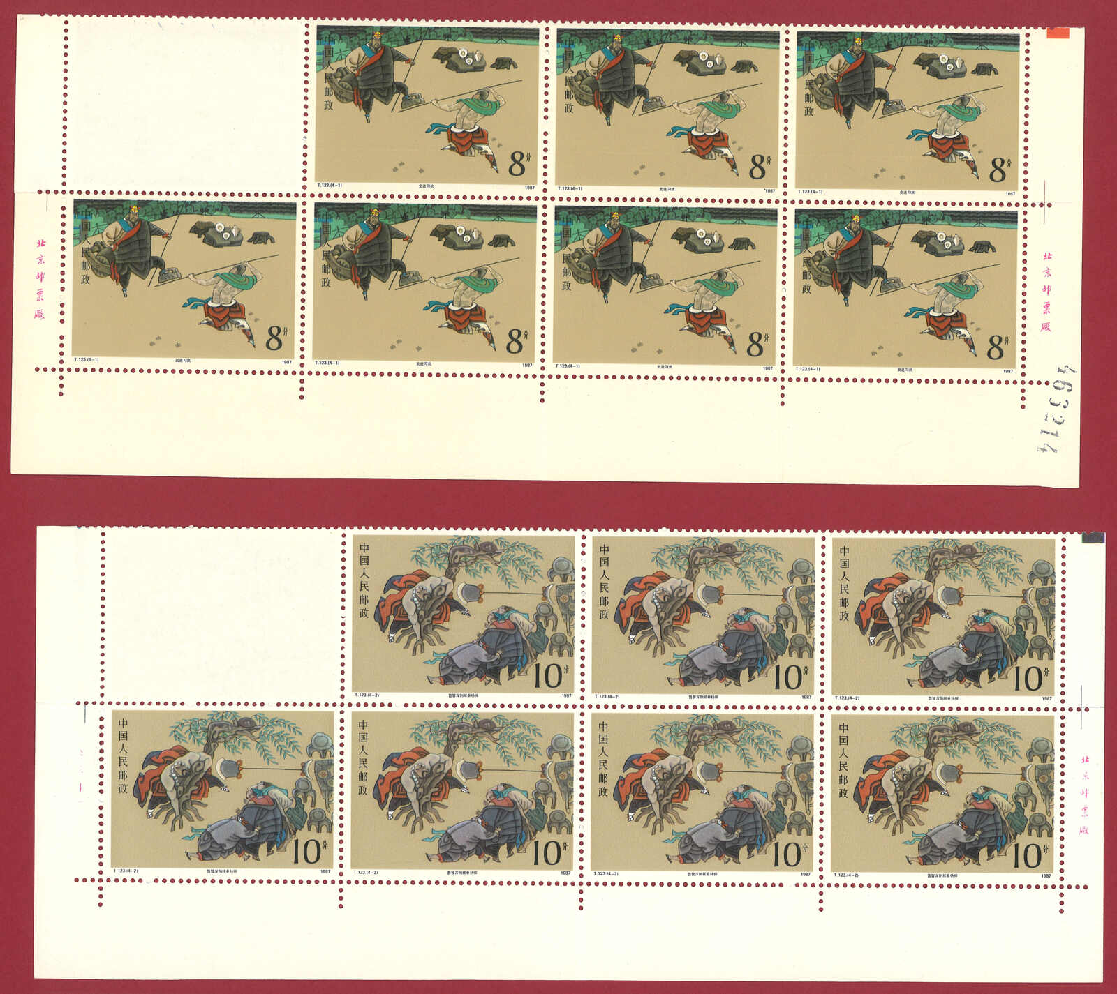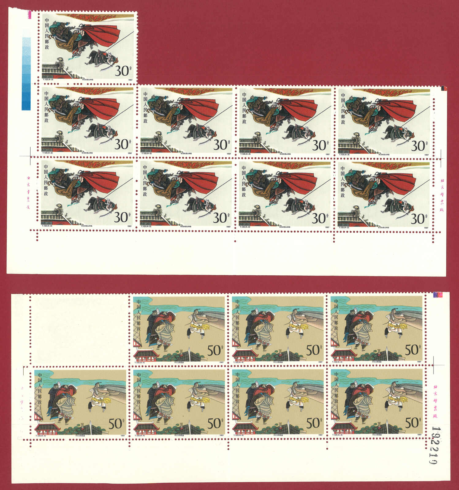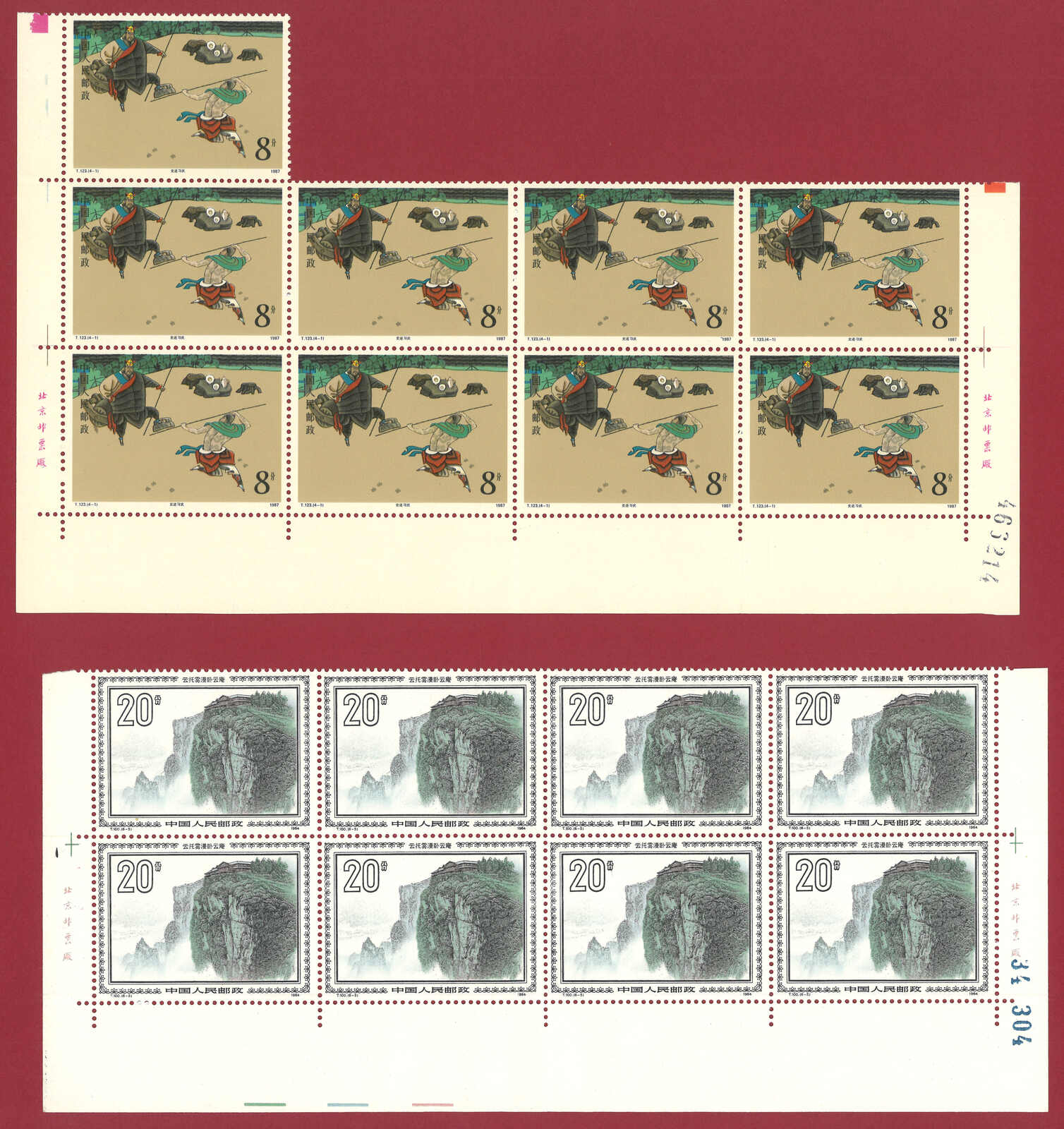 1981 T69 Dream of Red Mansions complete set in block of 10, with right margin or top right corner margin. Partly with colour plate. MNH with original gum. Folded along perf. Light toning.
