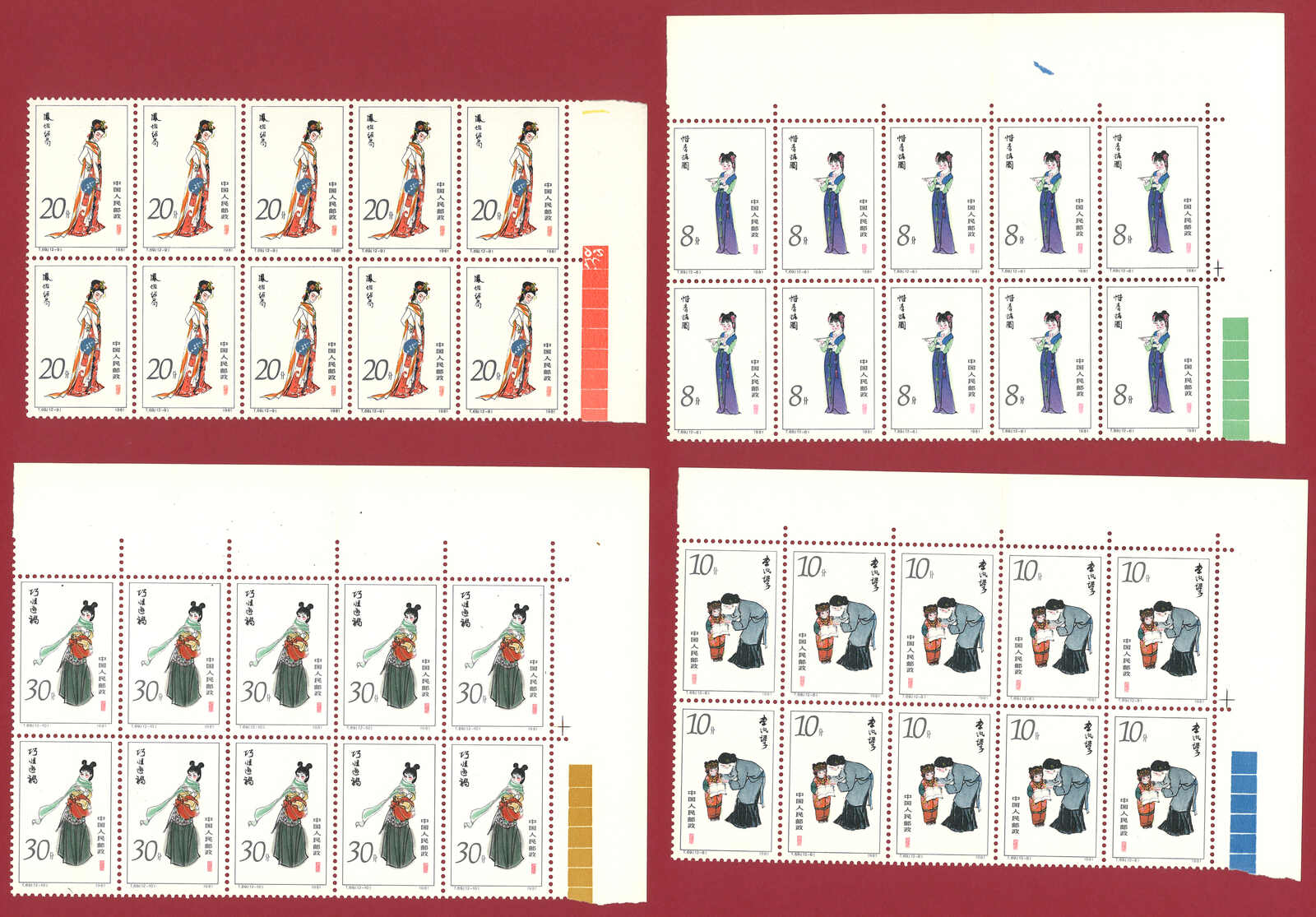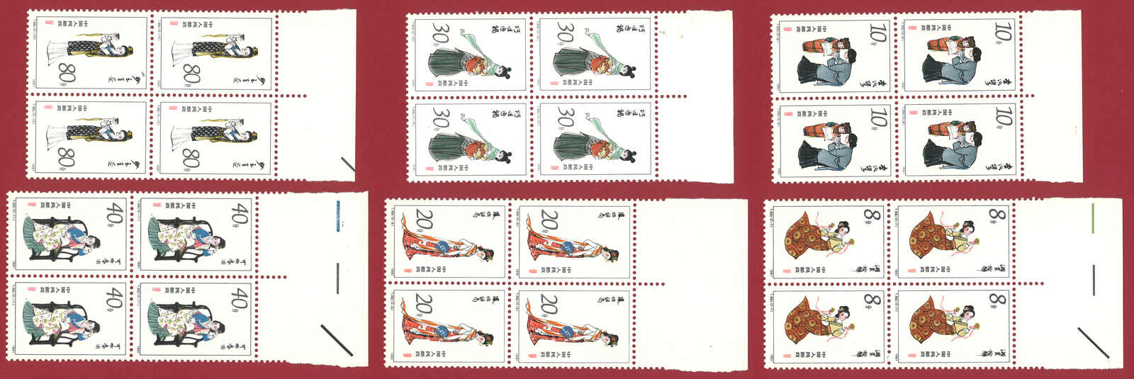 1981 T69 Dream of Red Mansions complete set in block of 4 with margin or imprint margin. MNH with original gum. Light toning.