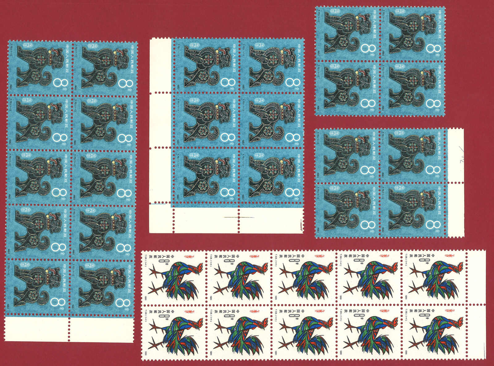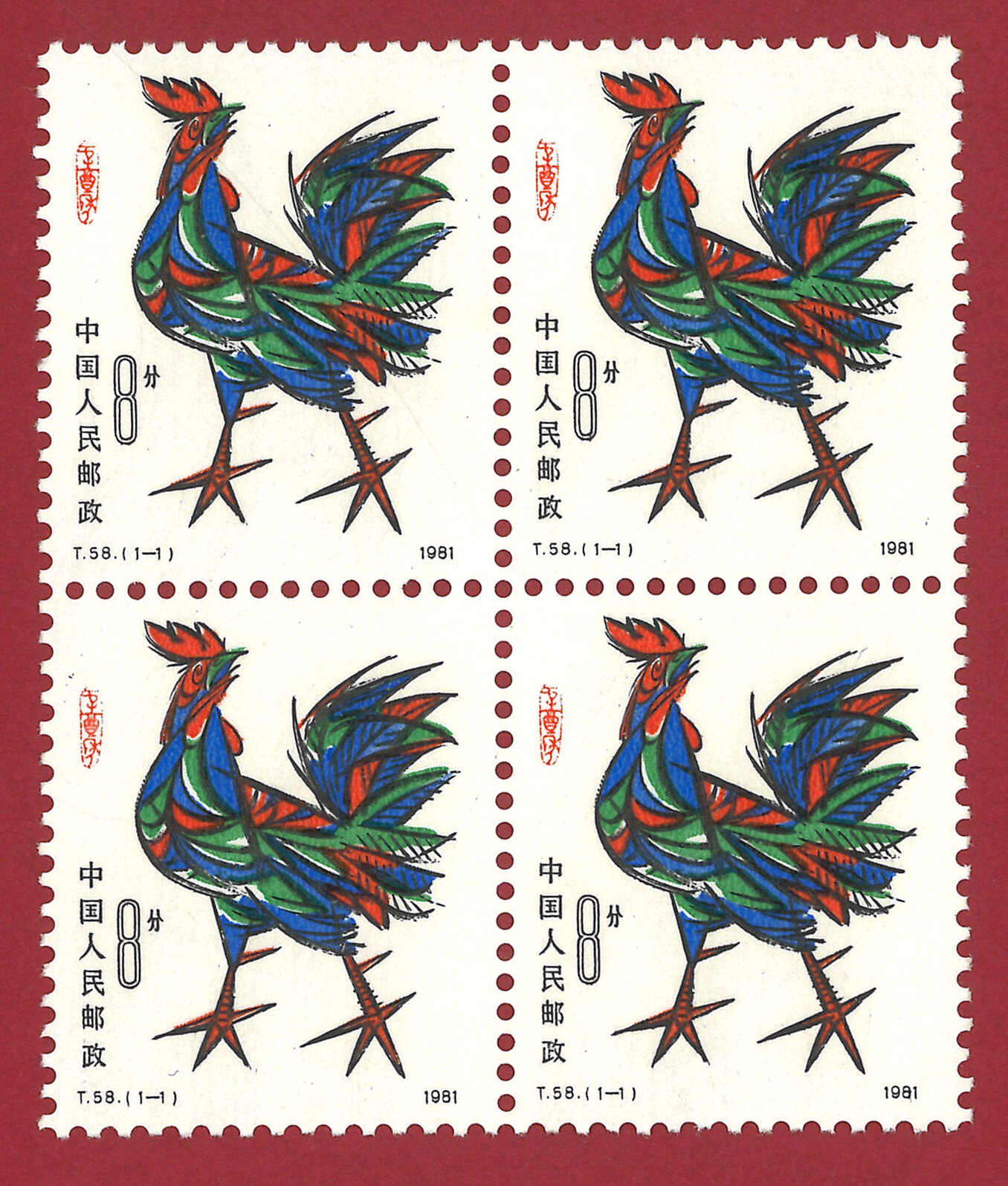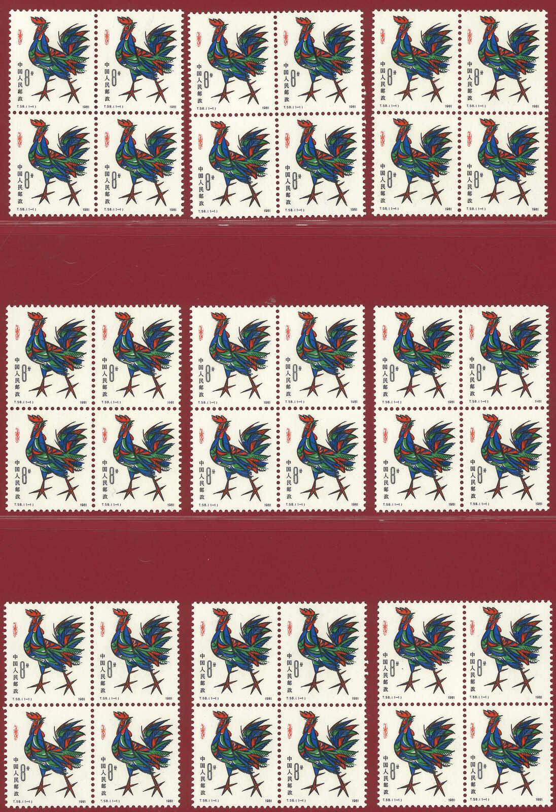 1981年T58雞年四方連新10件,合40枚票。原膠無貼。(Image
