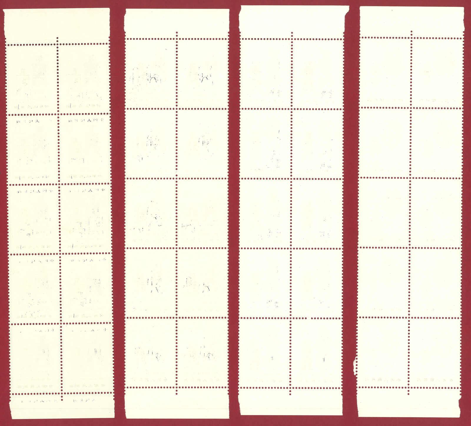 1981年T58雞年及1982年T70狗年連票新,前者為十方連,後者24枚。原膠無貼,微黃。部分齒間有折。(Image 1)
