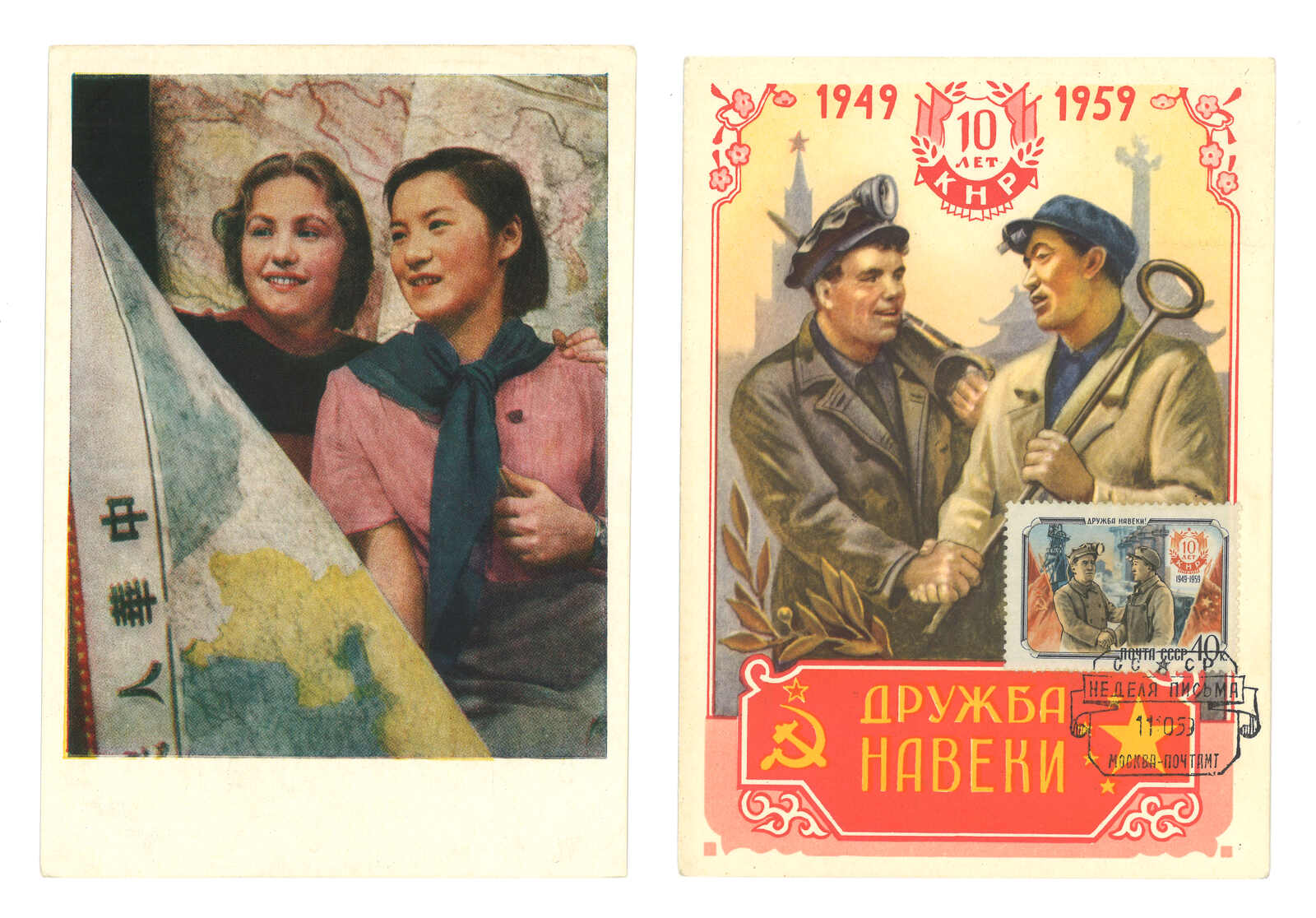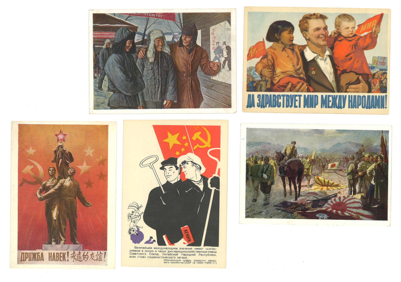 一組十件中蘇友誼主題圖片明信片,均未使用。(Image 1) (Image 2) (Image 3) (Image 4) (Image 5) (Image 6)