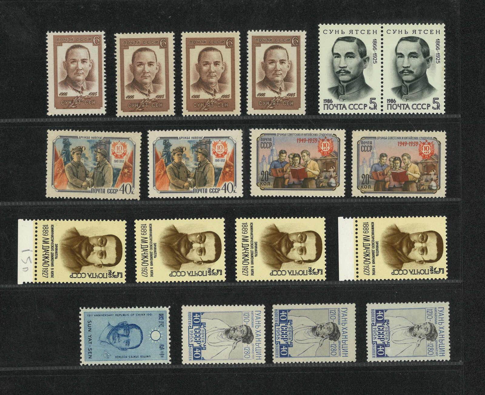 794 **/* imageA group of 18 USSR and USA stamps featuring Chinese historical figures and Sino-USSR friendship, including Dr. Sun, Guan Hanqing etc. Suitable for thematic collection.