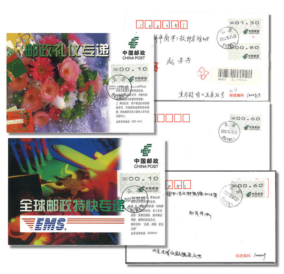 3401 image2000-2001 a group of 5 covers and postcards f.w. China 1st ATM stamps, tied by Beijing West Station cds. It is the first ATM stamp issued by the PRC. The first ATM vending machine was set in Beijing West Railway station. Historical.