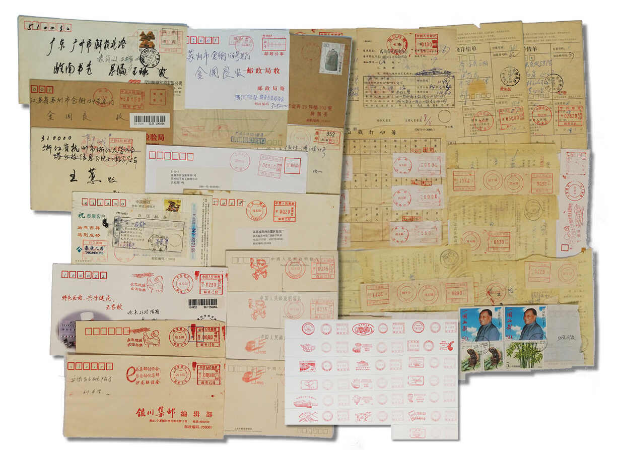 3403 image2000s an assorted group of about 50 PRC covers, postcards, parcel form and pieces applied with postage paid meter stamps. Including Beijing, Guangzhou, Tianjin, Jiangsu, Shaanxi and many other provinces and cities. A comprehensive collection.