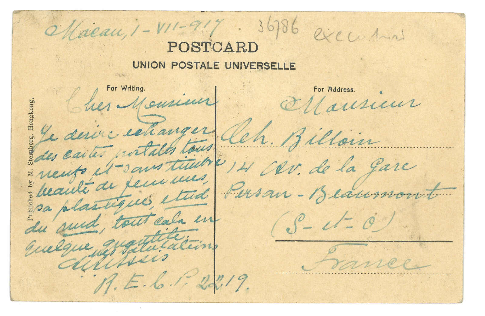 一組五件澳門圖片明信片及聯榜榜單。(Image 1) (Image 2) (Image 3)