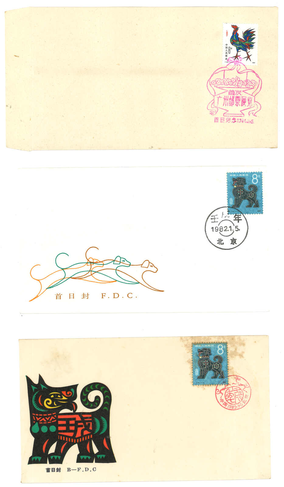 一組四件生肖首日封及郵折,分別為T58雞年、T70狗年及T80豬年。(Image 1) (Image 2)