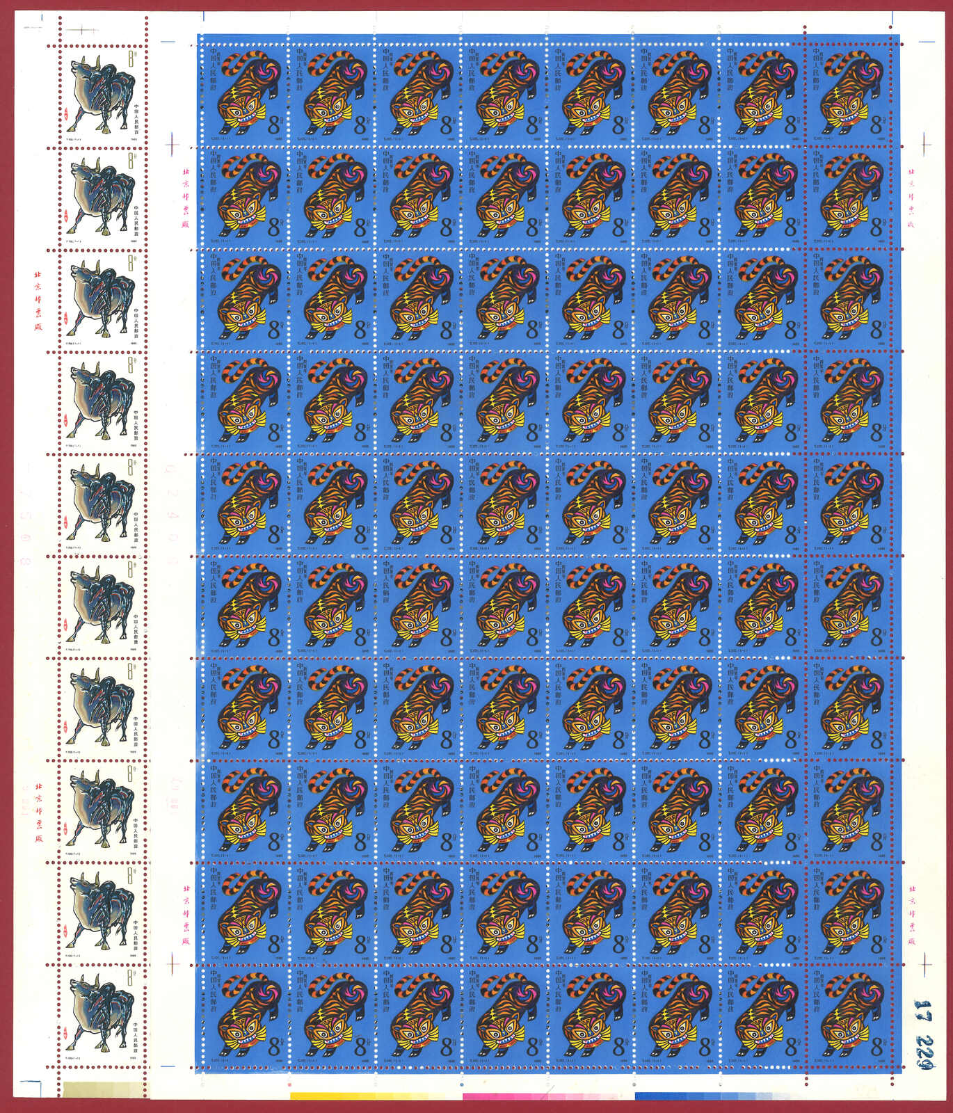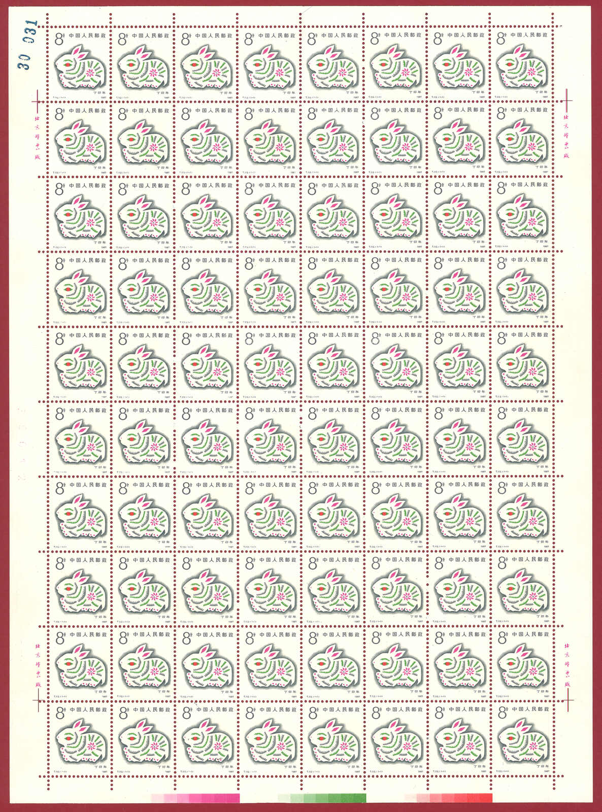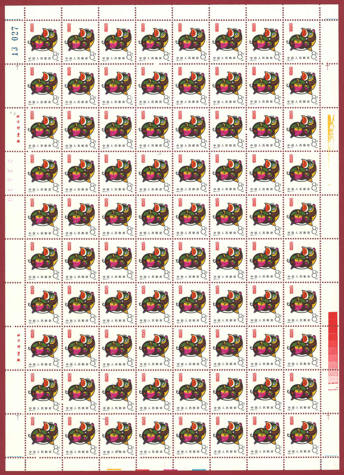 785 **/bof imageA group of PRC 1st round lunar year issues in sheets, including 11 zodiac except Monkey. All in complete sheet of 80 while Year of Rat in two half sheets which constitue 80 stamps as well. MNH. Light toning.