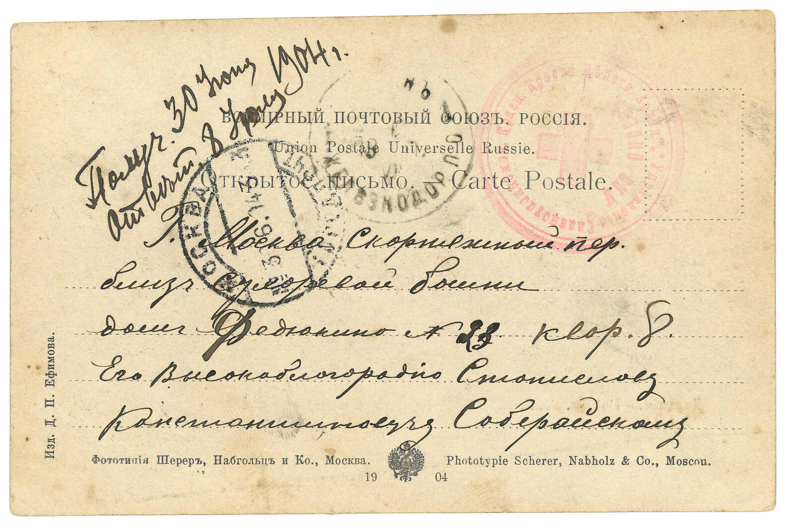 3158 image1905 Harbin Camp (21 Sep) to Mosocw, f.w. Coat of Arms 7k in pair on reverse, tied by Harbin Camp T&S type 1a cds. Arrived Moscow (17 Oct).
