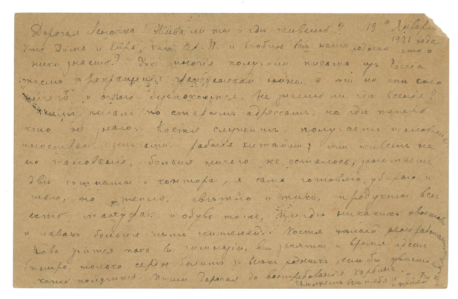 3150 image1903 (13 Jan) Russian 4k ovpt. KITAI stationery card from Harbin, tied by Harbin Russian PO T&S type 4 cds. Usage of ovpt. KITAI stationery in Manchuria is rather scarce. Top left corner damaged.