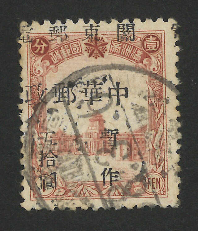 1608 o image1947 Manchukuo regular issue surch "Chinese Post / Kwantung Post and Telegraph" $50/1f, with ovpt shifted variety (Yang AD42), used by cds.