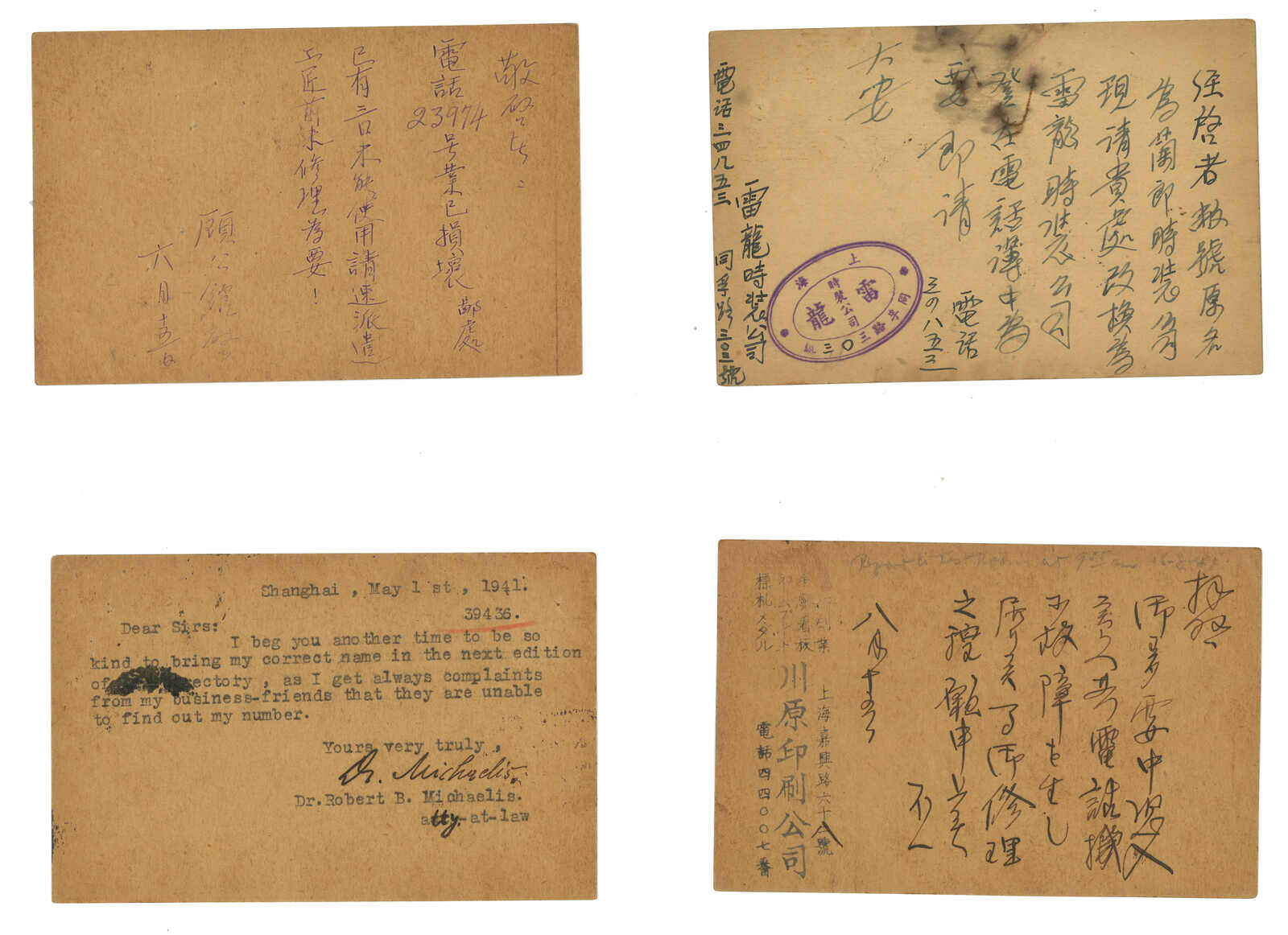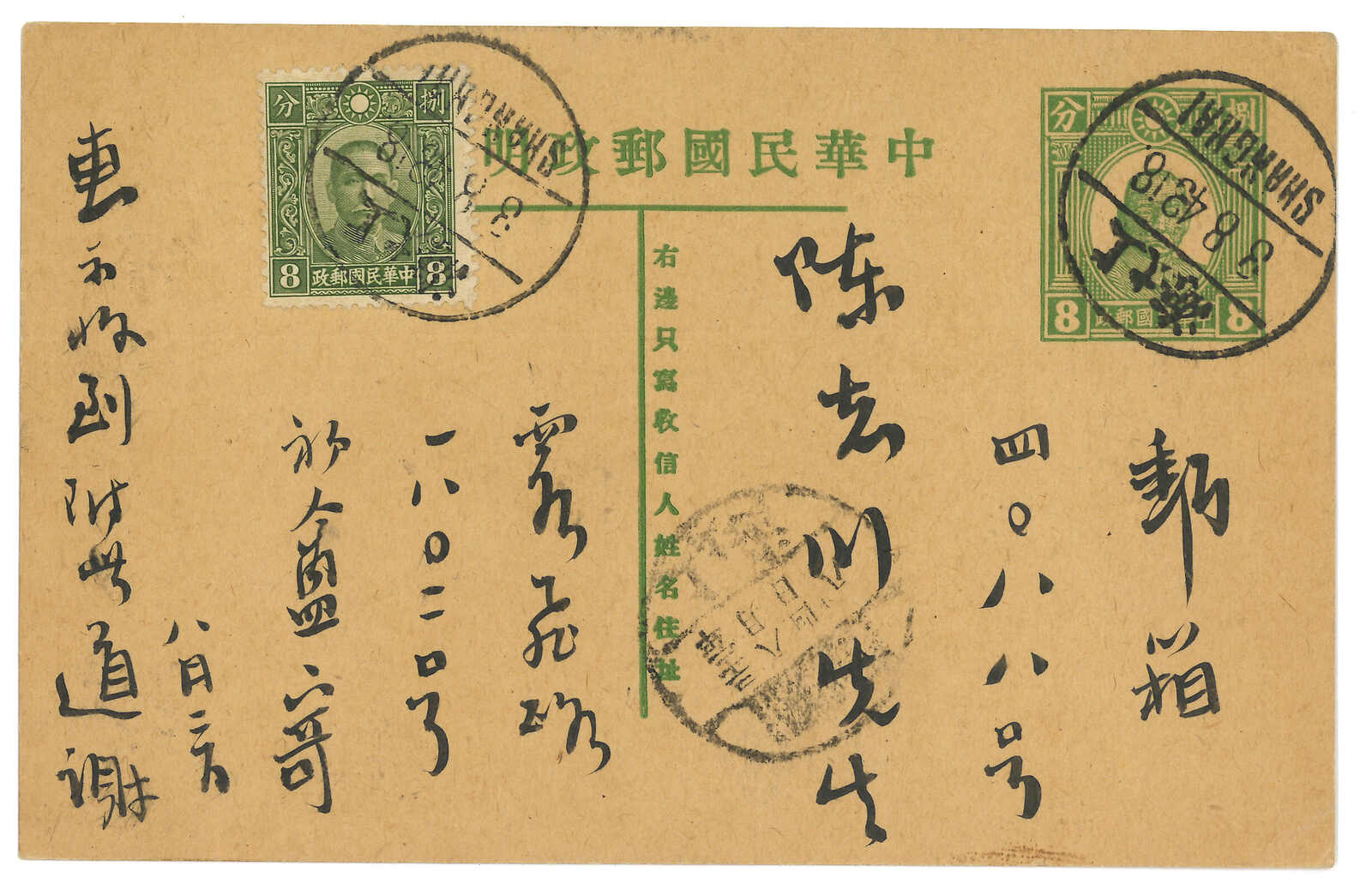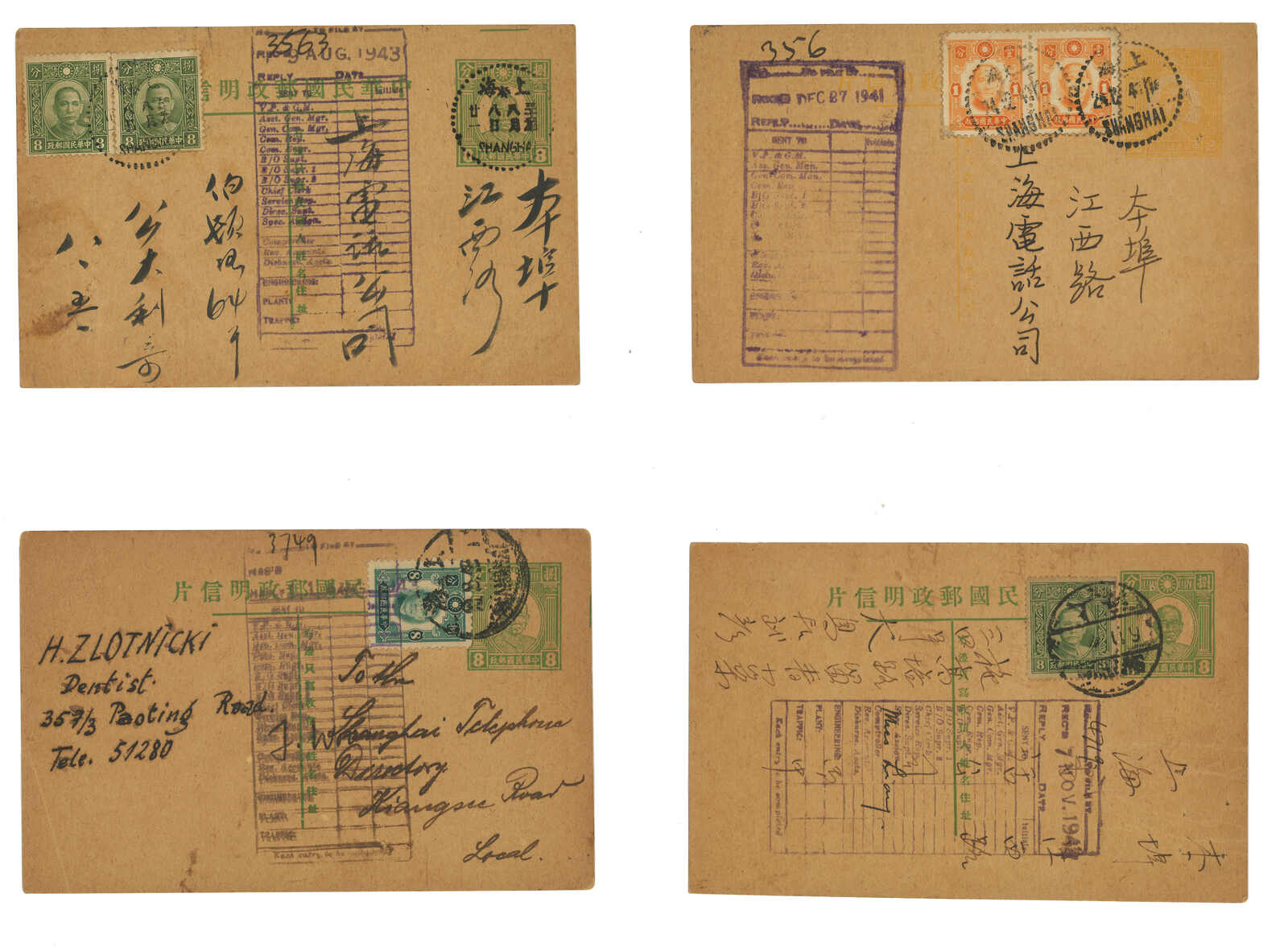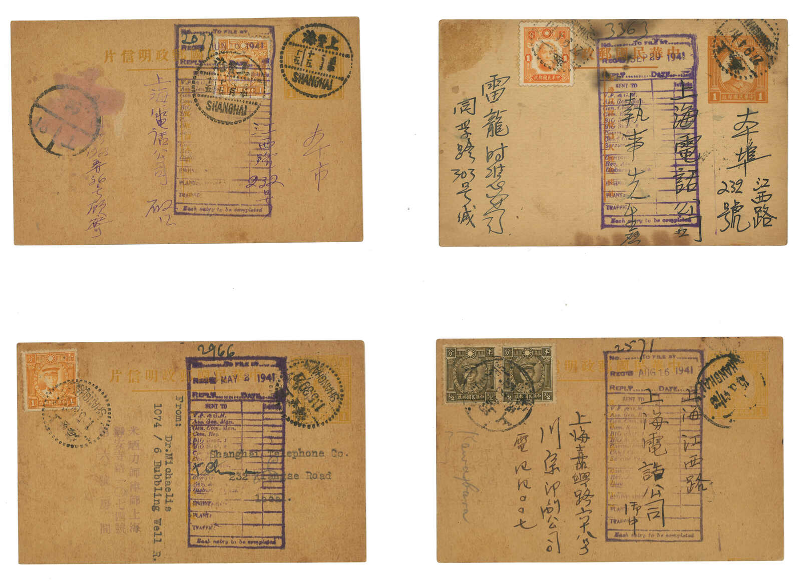 1940s a group of 8 SYS 1c, 2c and 8c stationery cards used in Shanghai local, all Shanghai Telephone Company correspondence, showcasing multiple postage adjustments.