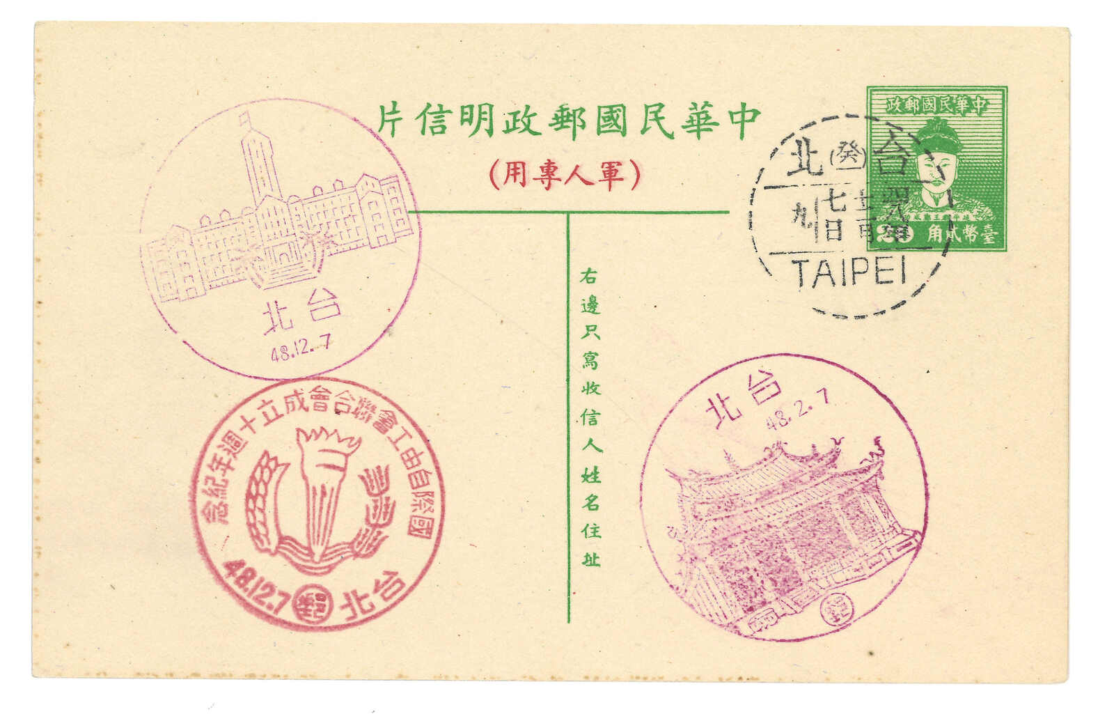 1940年代一組七件孫像第三版及第四版郵資片,實寄國內外目的地,展示了不同郵資、貼票及郵戳。另附一件鄭成功加蓋軍人專用片。(Image 1)