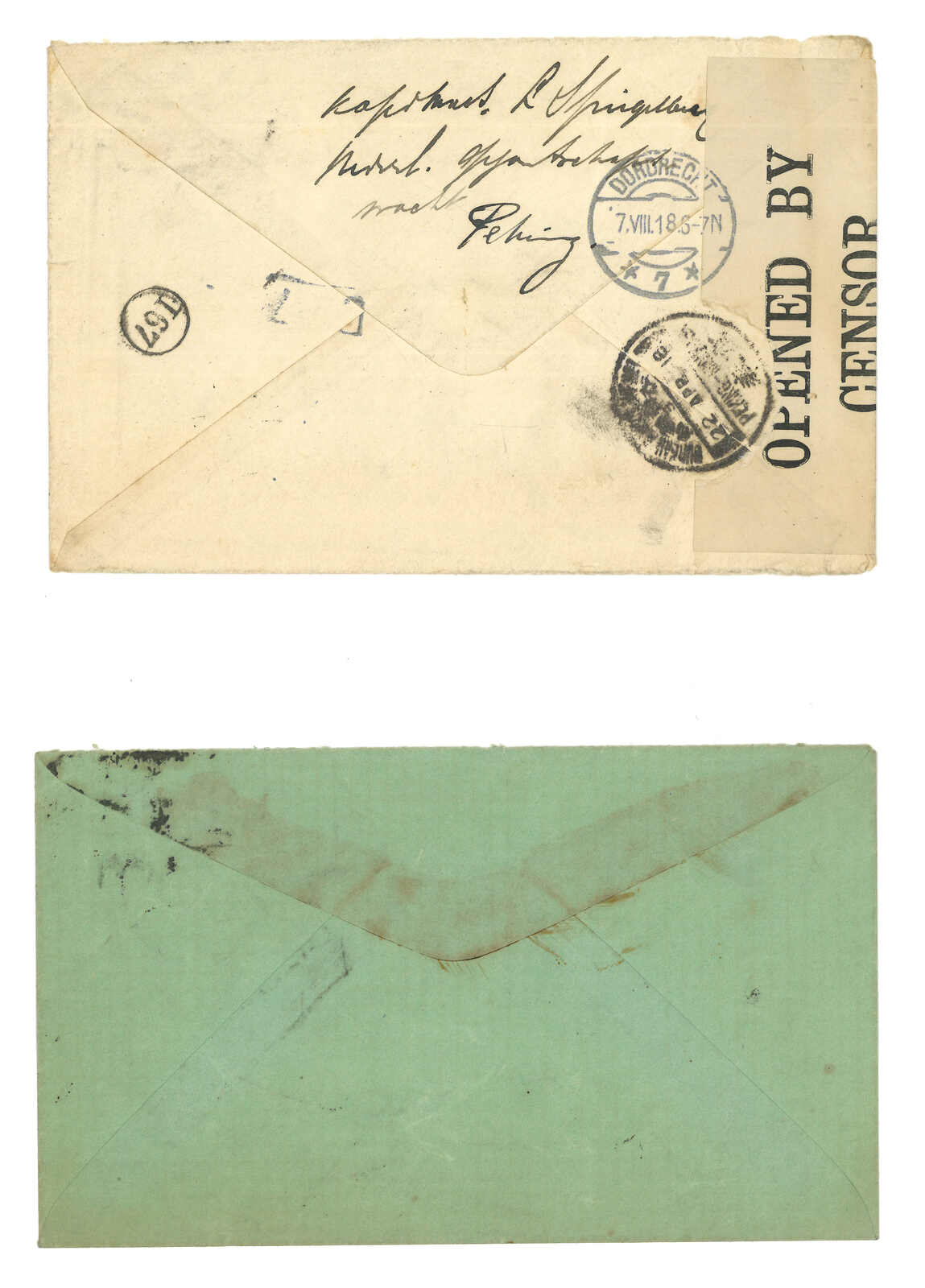 1921年直隸經美國寄德國。掛號封,背貼帆船1分雙連 + 3分六方連,合2角,銷模糊之直隸日戳。1.9經北京,1.12經上海,2.20經倫敦。2.23抵德國。西伯利亞鐵路因俄國內戰而尚未恢復。(Image 1)